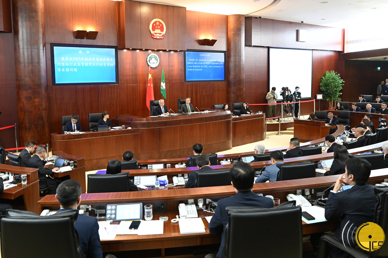 Chefe do Executivo, Sam Hou Fai, na sessão plenária da Assembleia Legislativa para responder às perguntas dos deputados sobre o Relatório das Linhas de Acção Governativa para o Ano Financeiro de 2025.