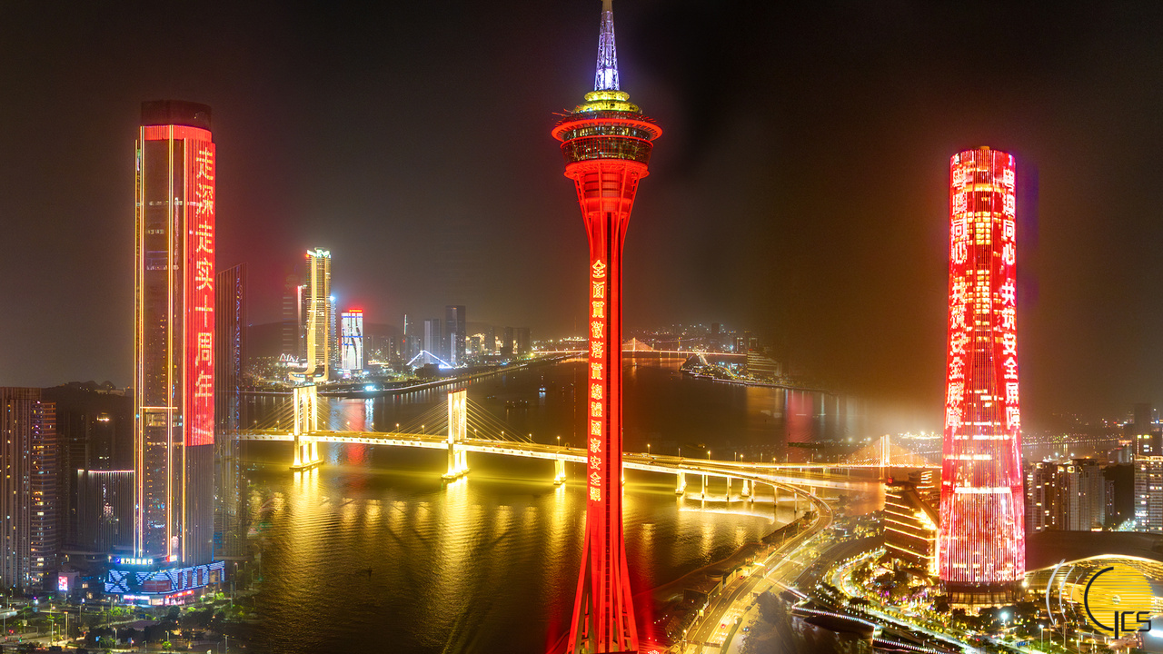 Este ano, a 15 de Abril de 2025, assinala-se a décima edição do «Dia da Educação da Segurança Nacional». Iluminação dos marcos icónicos de Macau, Hengqin e Zhuhai, à noite, para promover a segurança nacional. A Torre de Macau, CCCC Huitong Hengqin Plaza na zona financeira de Hengqin e o Centro Internacional de Convenções e Exposições de Shizimen de Zhuhai iluminados em simultâneo, exibindo slogans de promoção da Educação da Segurança Nacional, incluindo a “Implementação plena do Perspectiva Geral da Segurança Nacional”, “Educação da Segurança Nacional Dez anos de aprofundamento e Implementação" e "Guangdong e Macau trabalham em conjunto para consolidar a barreira de salvaguarda da segurança ".