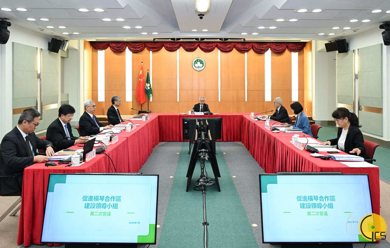 Chefe do Executivo, Sam Hou Fai, preside, à reunião de trabalho do grupo de liderança para a promoção da construção da Zona de Cooperação Aprofundada entre Guangdong e Macau em Hengqin.