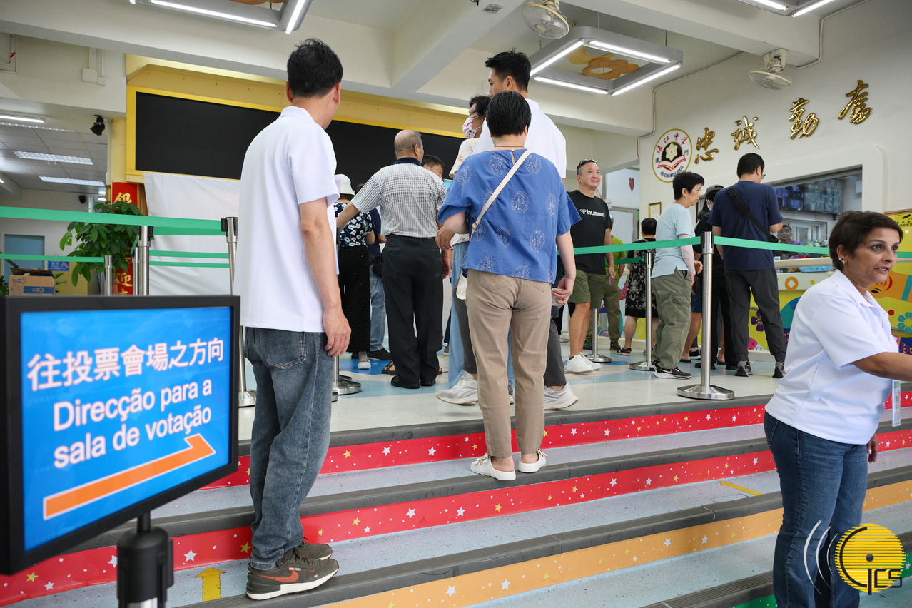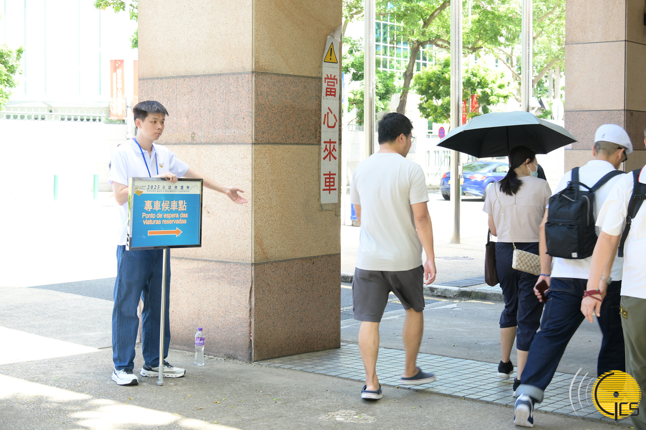 • Eleições para a Assembleia Legislativa 2025: Funcionários orientam os eleitores até ao ponto de espera de autocarros especiais depois de votarem.