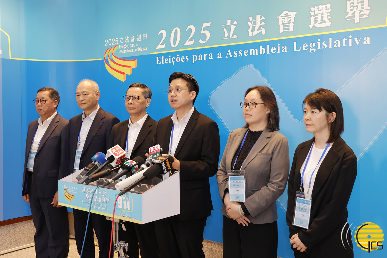 • Eleições para a Assembleia Legislativa 2025: assembleias de voto em funcionamento há mais de nove horas, o presidente da Comissão de Assuntos Eleitorais da Assembleia Legislativa, Seng Ioi Man, informa a comunicação social sobre o ponto de situação da votação.