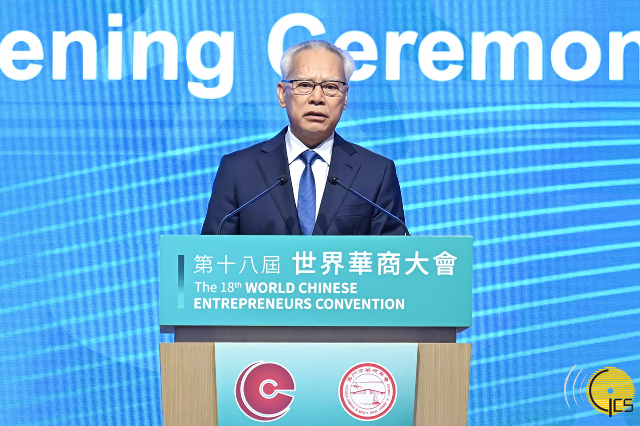 • Chefe do Executivo, Sam Hou Fai, discursa na cerimónia de inauguração da 18.ª Convenção Mundial dos Empresários Chineses.