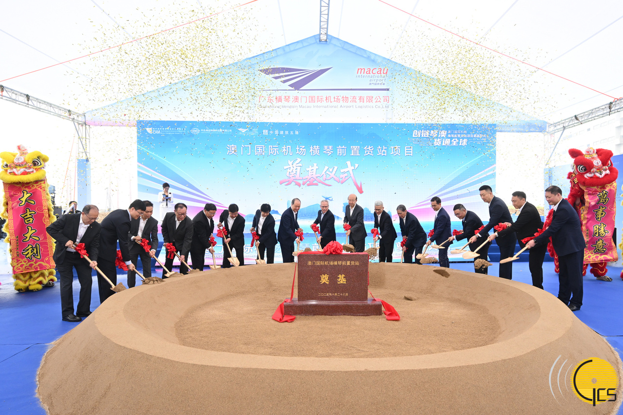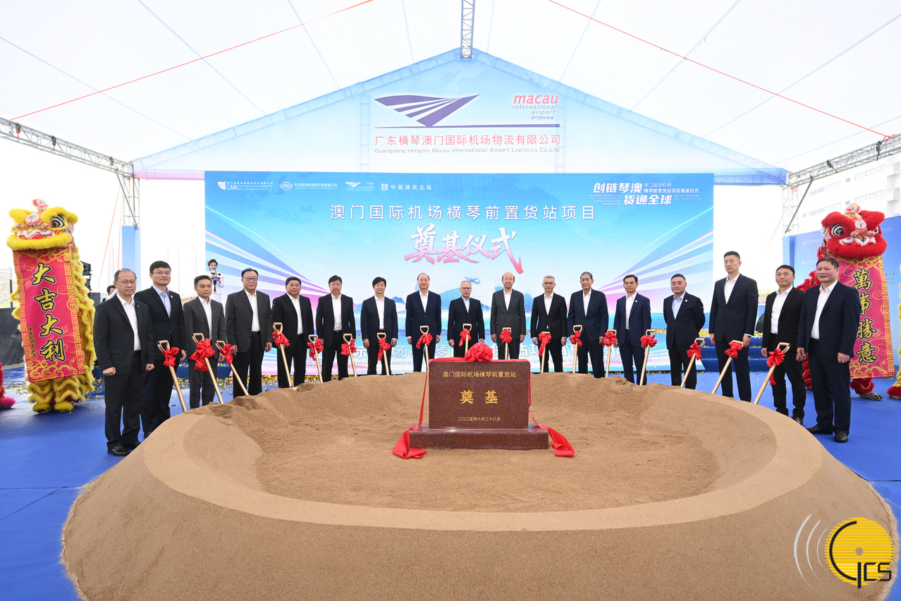 • Chefe do Executivo, Sam Hou Fai, e os convidados principais presidem à cerimonia de lançamento da primeira pedra do terminal de mercadorias do Aeroporto Internacional de Macau em Hengqin.