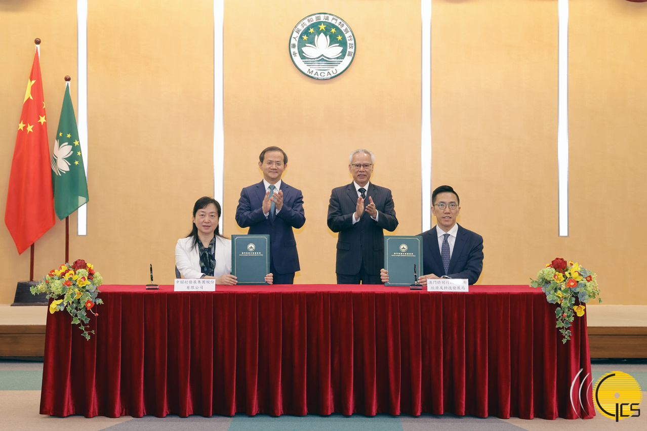• Chefe do Executivo, Sam Hou Fai, e o presidente do município de Pequim, Yin Yong, testemunham a assinatura do «memorando de cooperação entre a Direcção dos Serviços de Economia e Desenvolvimento Tecnológico da RAEM e o ZGC Group».