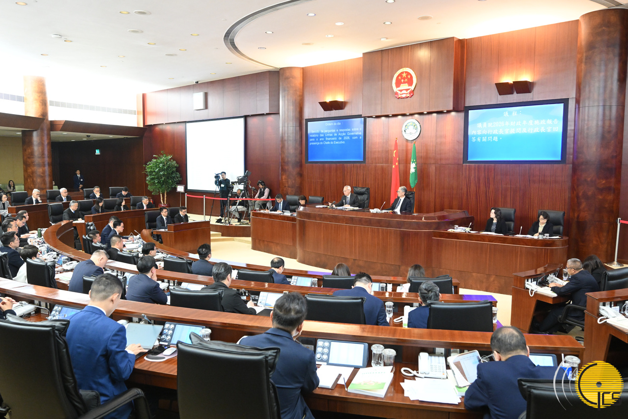 • Chefe do Executivo, Sam Hou Fai, na reunião plenária da Assembleia Legislativa para responder às perguntas dos deputados sobre o Relatório das Linhas de Acção Governativa para o ano de 2026.