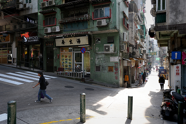 São 10 e meia da manhã, o céu é hoje mais azul, chama gente à rua, traz um homem de pijama à Estrada do Repouso – ou Avenida Kiang Wu, que é assim que foi baptizada em cantonês, em honra do Hospital Kiang Wu, ali fundado em 1872.