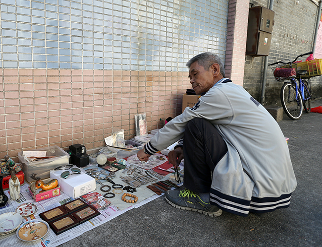 É aí que encontramos Iau Si Van. Anda pela casa dos 70, veste um casaco que diz New York, vende velharias no Mercado Popular do Lin Kai. Em cima de jornais estendidos sobre o chão, um pouco de tudo: relógios, pulseiras, pedras, agulhas de croché, moedas, notas do passado, dólares de Hong Kong, patacas com a imagem de Camilo Pessanha.