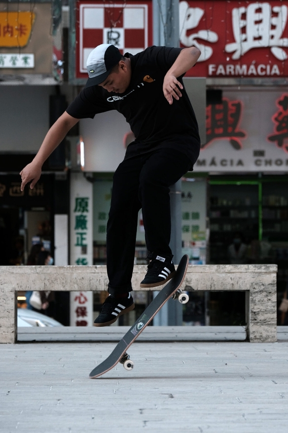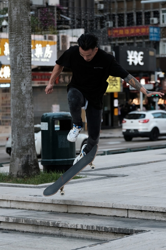 Para Diogo Silvério é uma terapia desde os 13 anos, quando se estreou. Depois de comprar a primeira tábua em Hong Kong, numa altura em que ainda não havia lojas em Macau que vendessem o artigo, nunca mais parou. Aos 26 anos continua a saltar para cima do skate quatro a cinco vezes por semana, sempre que tem um tempo livre. “Tenho conhecido tanta gente e feito tantos amigos ao longo destes anos. Mais velhos, mais novos, locais, estrangeiros. Conheci pessoas dos mais variados contextos e tudo se deve ao skate.”
