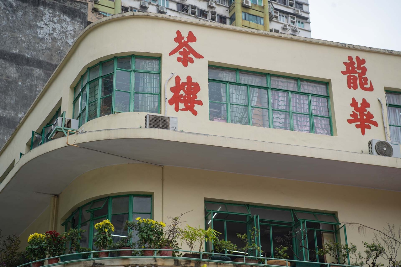 A Casa de Chá Long Wa fica situada num edifício de arquitectura de estilo “art deco”, junto do Mercado Vermelho