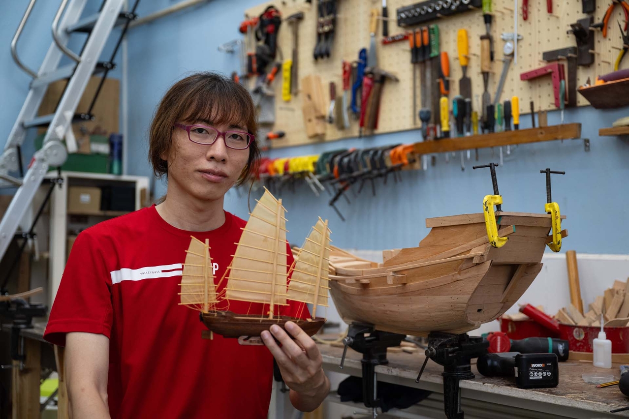 A produção de barcos em miniatura pretende ajudar a preservar práticas e técnicas ligadas à antiga indústria da construção naval de Macau (Foto: Cheong Kam Ka)