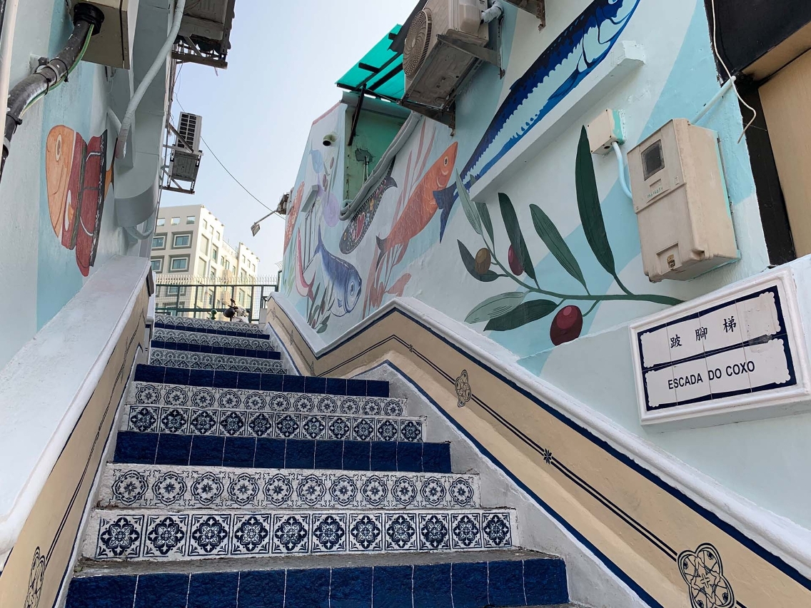 O mais recente mural produzido com apoio governamental, concluído em meados de Abril, nasceu na escadaria de pedra da Rua de Tomás da Rosa, no Bairro da Horta da Mitra. Fruto de uma parceria entre o IC e a Associação Cultural da Vila da Taipa, foi concebido por seis artistas locais. A obra “retrata a história das mudanças na zona ao longo de um século, descrevendo vários símbolos culturais icónicos e traços típicos”, como o bosque de bananeiras que aí existiu no passado e as danças do leão associadas ao Templo de Foc Tac do Bairro da Horta da Mitra, explica o IC.