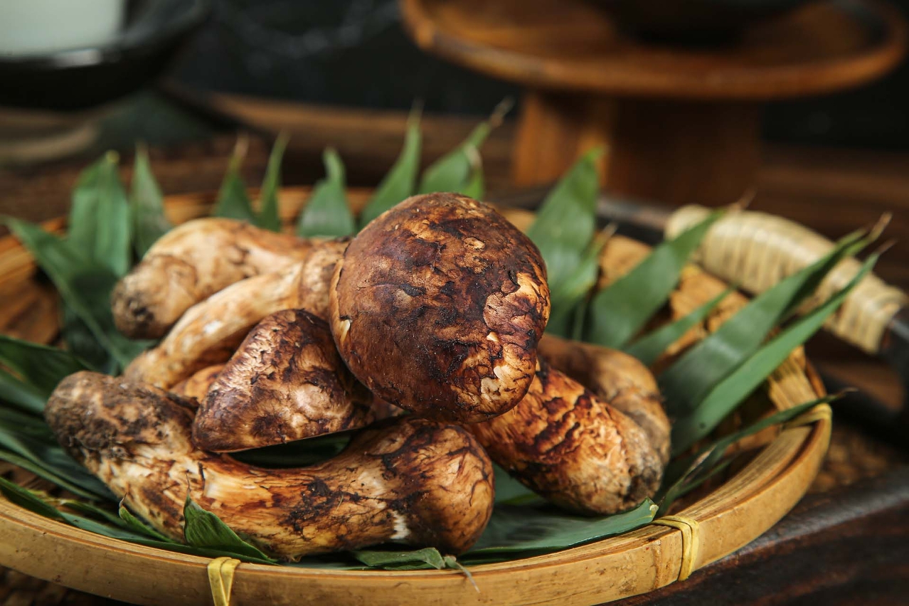 A região de Shangri-La, no norte de Yunnan, é o principal berço do “matsutake” na China. O aroma deste cogumelo é intenso e a sua textura delicada e suculenta. A melhor forma de o saborear é realçando a sua frescura natural, seja fatiado como “sashimi”, lentamente grelhado sobre carvão ou cozido em caldo de galinha.