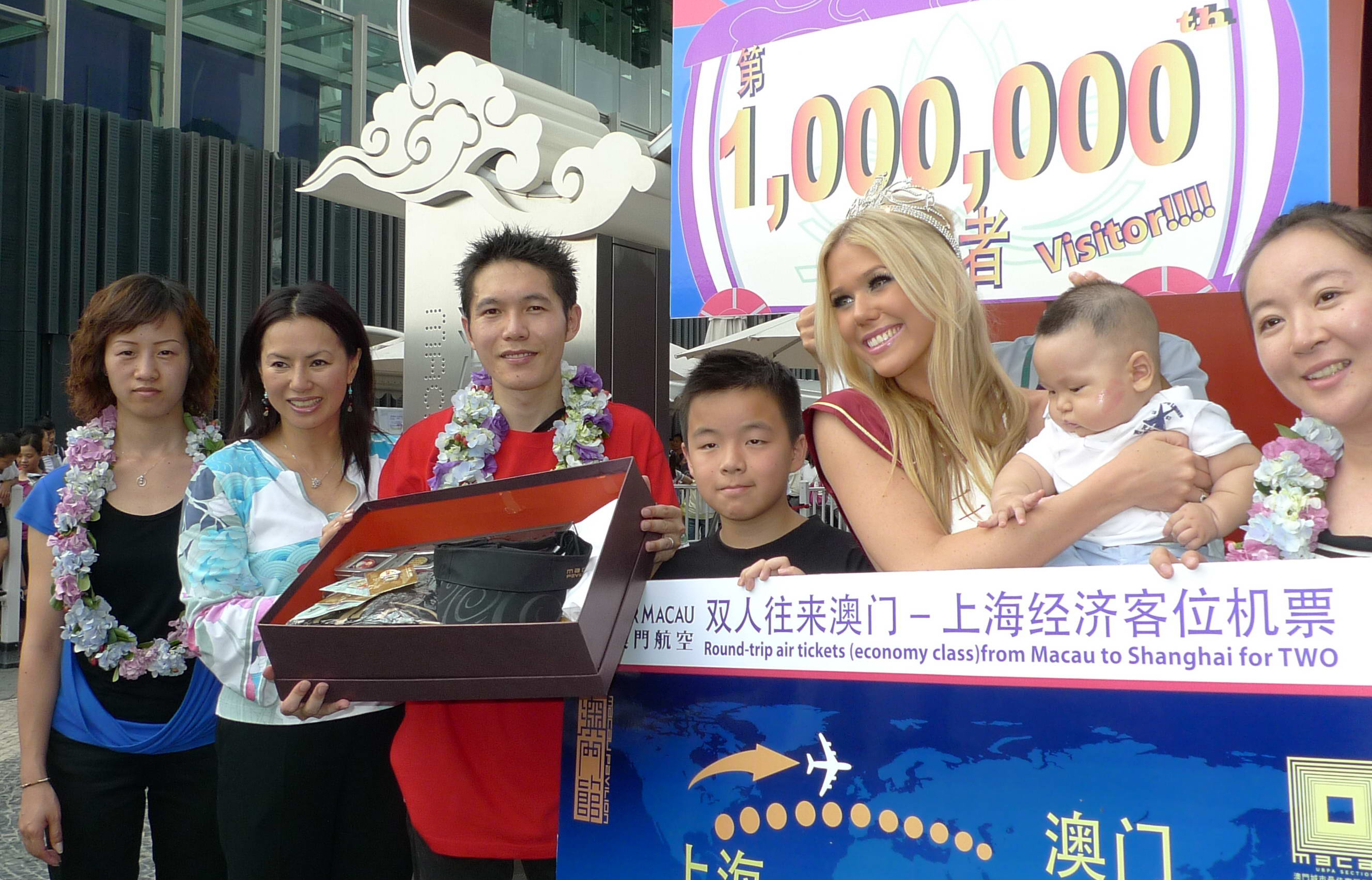 O Gabinete Preparatório para a Participação de Macau na Exposição Mundial de Xangai (GPPMEMS) realizou, esta manhã, uma cerimónia de boas-vindas ao milionésimo visitante do Pavilhão de Macau, o senhor Zhang, oriundo da cidade anfitriã do grande evento, acompanhado pela mulher e um bebé.