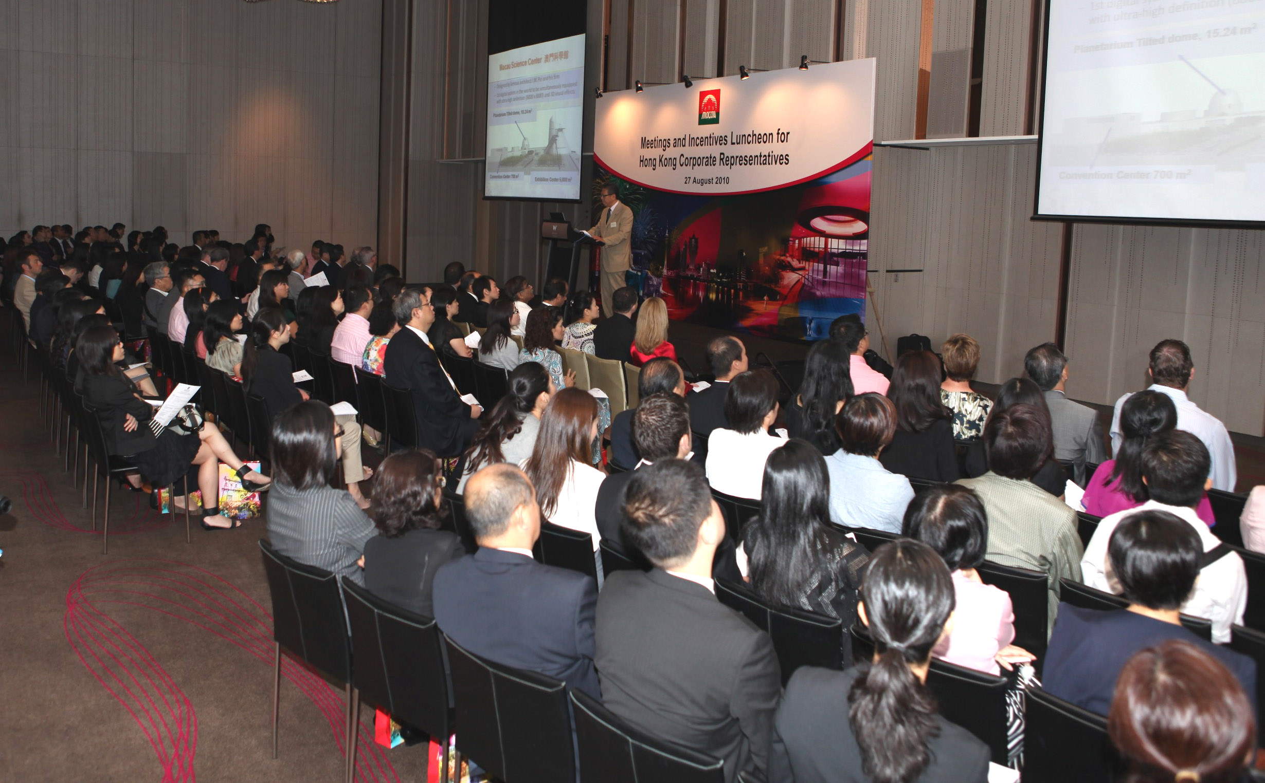 Para promover Macau como destino de turismo de negócios, o Centro de Turismo de Negócios de Macau da Direcção dos Serviços de Turismo (DST) realizou hoje (27 de Agosto) reuniões e incentivos em almoço no W Hotel em Hong Kong para representantes empresariais. Mais de 100 planeadores de eventos e executivos de empresas locais e multinacionais participaram no almoço, onde ficaram a conhecer as mais recentes novidades e atractivos de Macau enquanto destino para acolher reuniões e actividades de incentivos. Do lado de Macau estiveram presentes 30 operadores da indústria de reuniões e incentivos para troca de opiniões e oportunidades com representantos empresariais de Hong Kong.