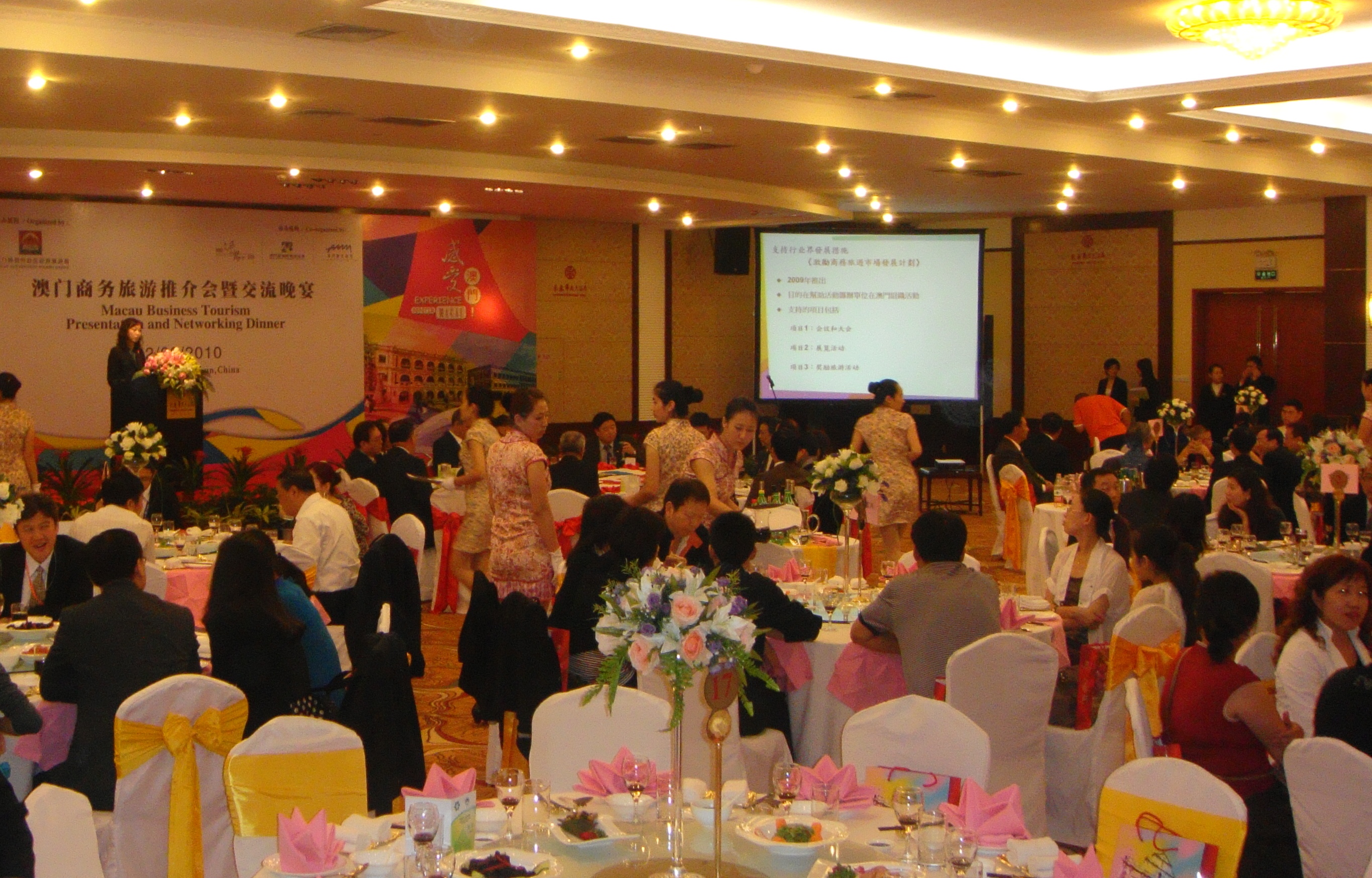 A Direcção dos Serviços de Turismo (DST) organizou um Jantar de Networking e uma apresentação sobre o Turismo de Negócios em Macau, que decorreu no hotel HuaTian, em Changchun na Província de Jilin durante o evento “Dynamic Macao” no dia 2 de Setembro. Este evento serviu para proporcionar mais oportunidades à população do Continente e dar-lhes a conhecer em termos de diversificação da economia moderada, bem como mostrar a cultura única, recursos turísticos e os últimos desenvolvimentos e produtos da indústria do MICE existentes em Macau.