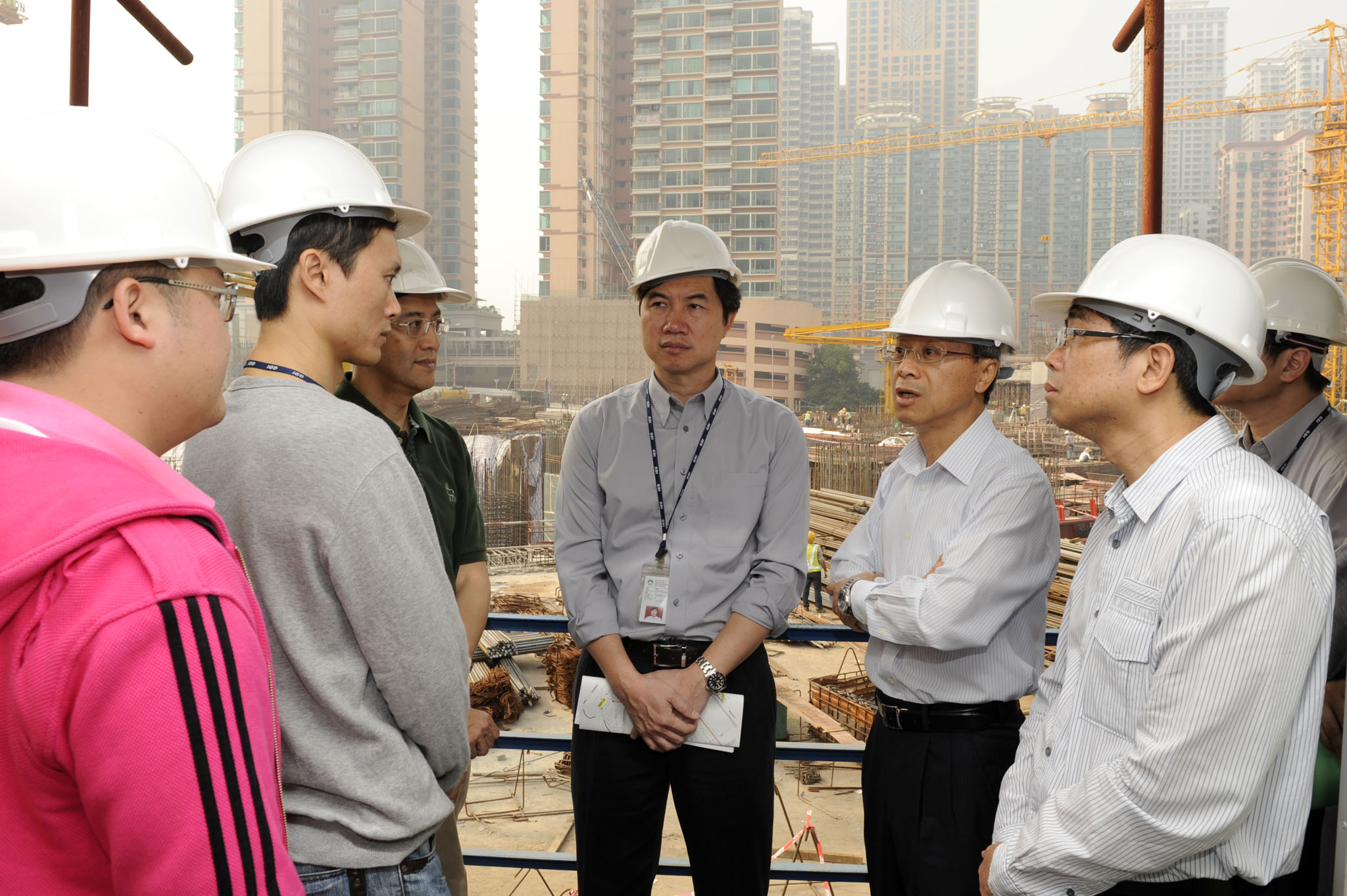 O Grupo, liderado por Eng. Lau Si Io, em que fizeram parte o Presidente do Instituto de Habitação, Dr. Tam Kuong Man, o Coordenador do Gabinete para o Desenvolvimento das Infra-estruturas, Dr. Chan Hon Kit, o Subdirector da Direcção dos Serviços de Solos, Obras Públicas e Transportes, Dr. Shin Chung Low Kam Hong e outros membros, realizou uma inspecção sobre várias empreitadas públicas relacionadas com o bem estar da população, que se incluem o Complexo de Habitação Social(Bloco A), na Ilha Verde, a Habitação Económica TN27(Taipa), as Habitações Públicas de Seac Pai Van(Coloane), o Jardim situado junto à Rua de Seng Tou(Taipa), entre outros. Durante a inspecção, além de ouvir a apresentação dos empreiteiros, o Grupo realizou a inspecção in loco, perguntando sobre o progresso da execução, os recursos humanos, a configuração das máquinas e dos equipamentos de apoio, etc.