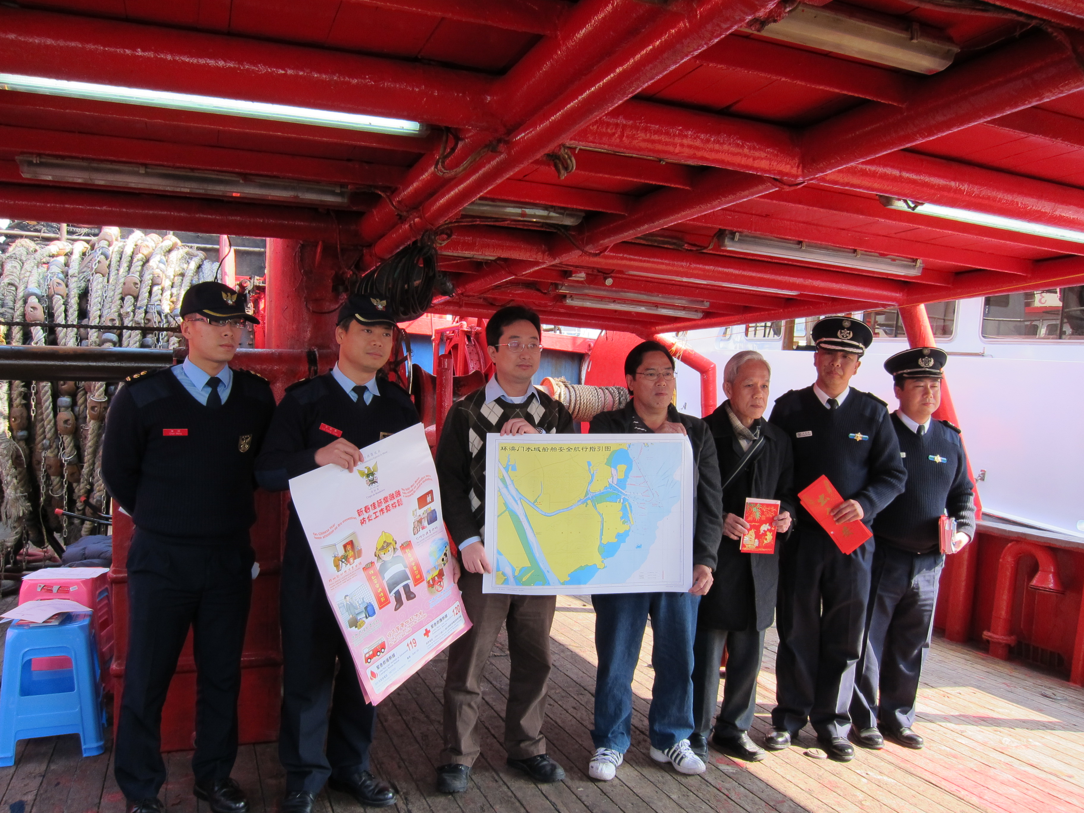 Durante a visita aos pescadores, a CP distribuíram também aos pescadores o “Mapa de orientação sobre a navegação segurança das embarcações na área marítima confinante com Macau”, que foi colaborado pela CP e pela autoridade marítima de Zhuhai, com o intuito de elevar a segurança do ambiente da navegação na zona marítima circundante de Macau, dedicando a garantir a realização da ilha artificial da Ponte Hong Kong-Zhuhai-Macau e das obras dos novos aterros, e mantendo a segurança do ambiente do trânsito marítimo. A CP deseja que os pescadores cumpram os dispostos do “Mapa de orientação”, com o objectivo de assegurar o acesso de entrada e saída de Macau em condições de segurança.