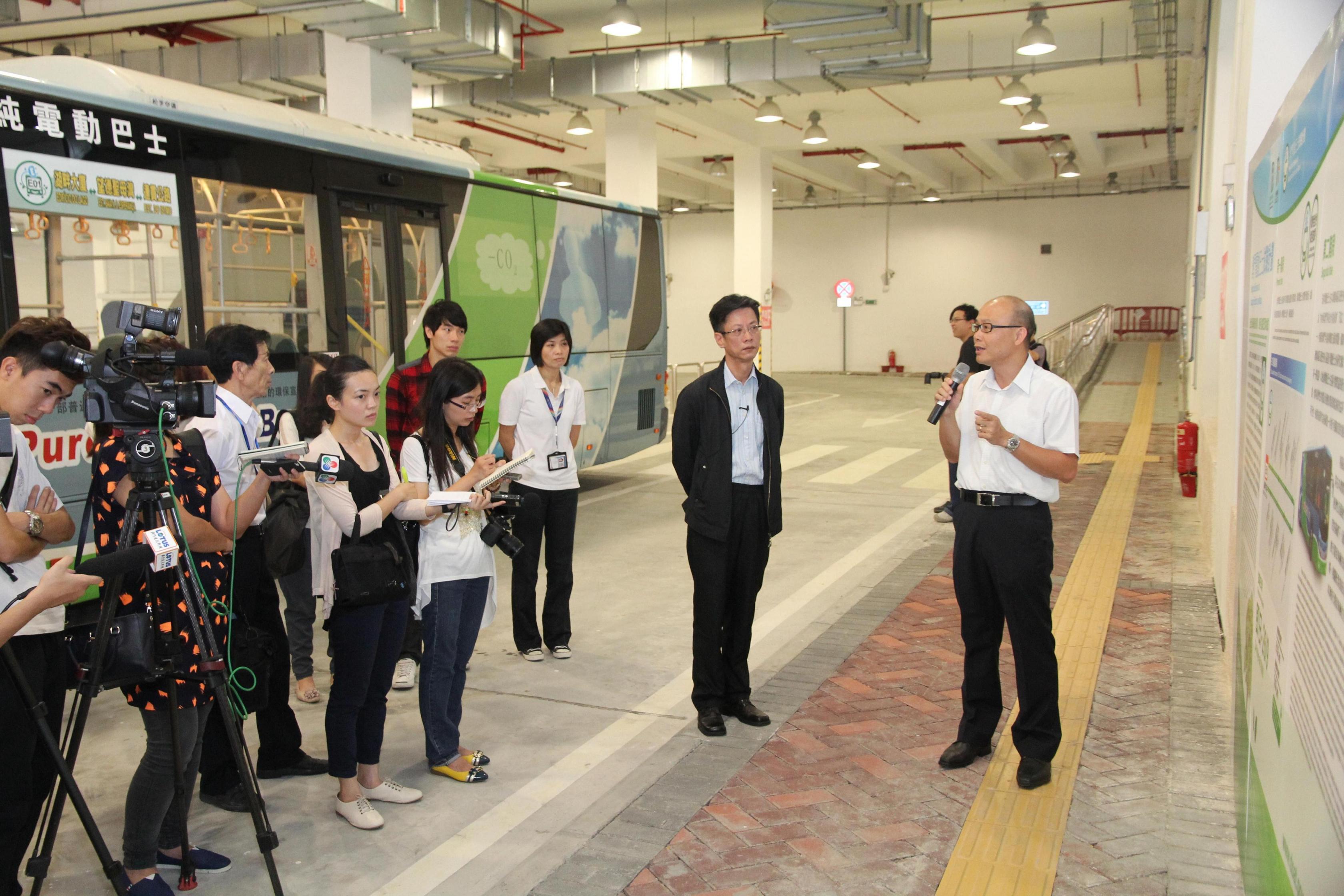 O chefe de Departamento de Controlo da Poluição Ambiental da Direcção dos Serviços de Protecção Ambiental, Ip Kuong Lam, o chefe de Departamento de Gestão de Tráfego da Direcção dos Serviços para os Assuntos de Tráfego, Lo Seng Chi, em conjunto com o pessoal técnico da Sociedade de Transportes Colectivos de Macau fizeram hoje (dia 4) a apresentação pormenorizada do projecto de ensaios do autocarro eléctrico junto dos órgãos de comunicação social e também organizaram uma viagem experimental para estes órgãos.