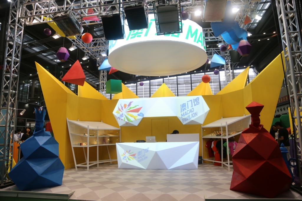 O Pavilhão de Macau tem como tema “sonho”, utilizando uma combinação de polígonos em padrões variados para criar uma ambiência onírica, simbolizando o processo criativo em que a imaginação livre e sem rédeas gradualmente assume forma e finalmente consubstancia o ‘sonho’. A estrutura, em cores vivas, ilustra a vitalidade da indústria de animação local. As entidades participantes de Macau mostram os seus mais recentes produtos, incluindo curtas de animação originais, aplicações para telemóveis, ilustrações, revistas de banda desenhada e mercadorias, tendo já atraído bastantes visitantes e órgãos de comunicação social. O Pavilhão conta ainda com uma instalação interactiva, um ‘espelho mágico’, proporcionando um relacionamento mais directo com os visitantes e permitindo que estes fiquem a conhecer melhor as indústrias de animação de Macau.
