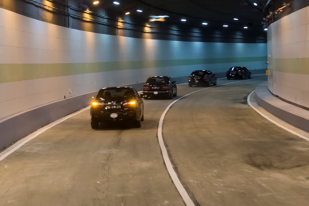 Hoje de manhã, a delegação chefiada pelo Secretário Cheong U e o Secretário para os Transportes e Obras Públicas, Lau Si Io, passou, pela primeira vez, pelo túnel subfluvial e entrou no novo campus, marcando assim um momento histórico.