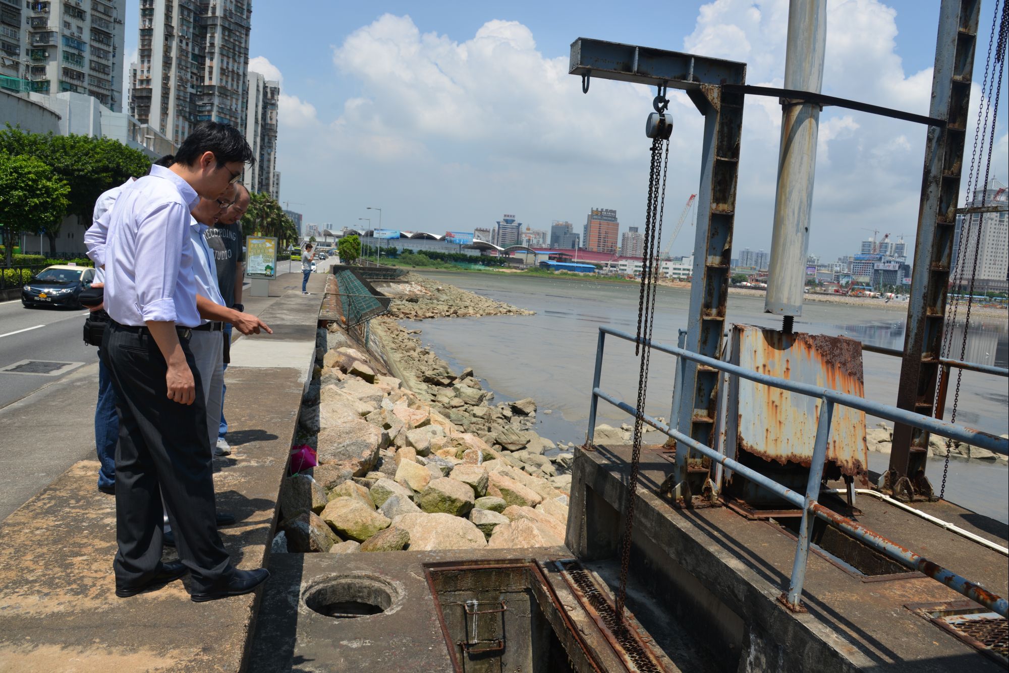 Por outro lado, o assunto mereceu muita atenção da DSPA e do Gabinete para o Desenvolvimento de Infra-estruturas (GDI), pelo que estes serviços destacaram mais uma vez pessoal ao local para investigação. Feita a devida investigação, o GDI apurou que a zona de ocorrência não se trata do local adjacente à ilha artificial, nem foi originada pelas obras de construção da Ponte Hong Kong/Zhuhai/Macau,