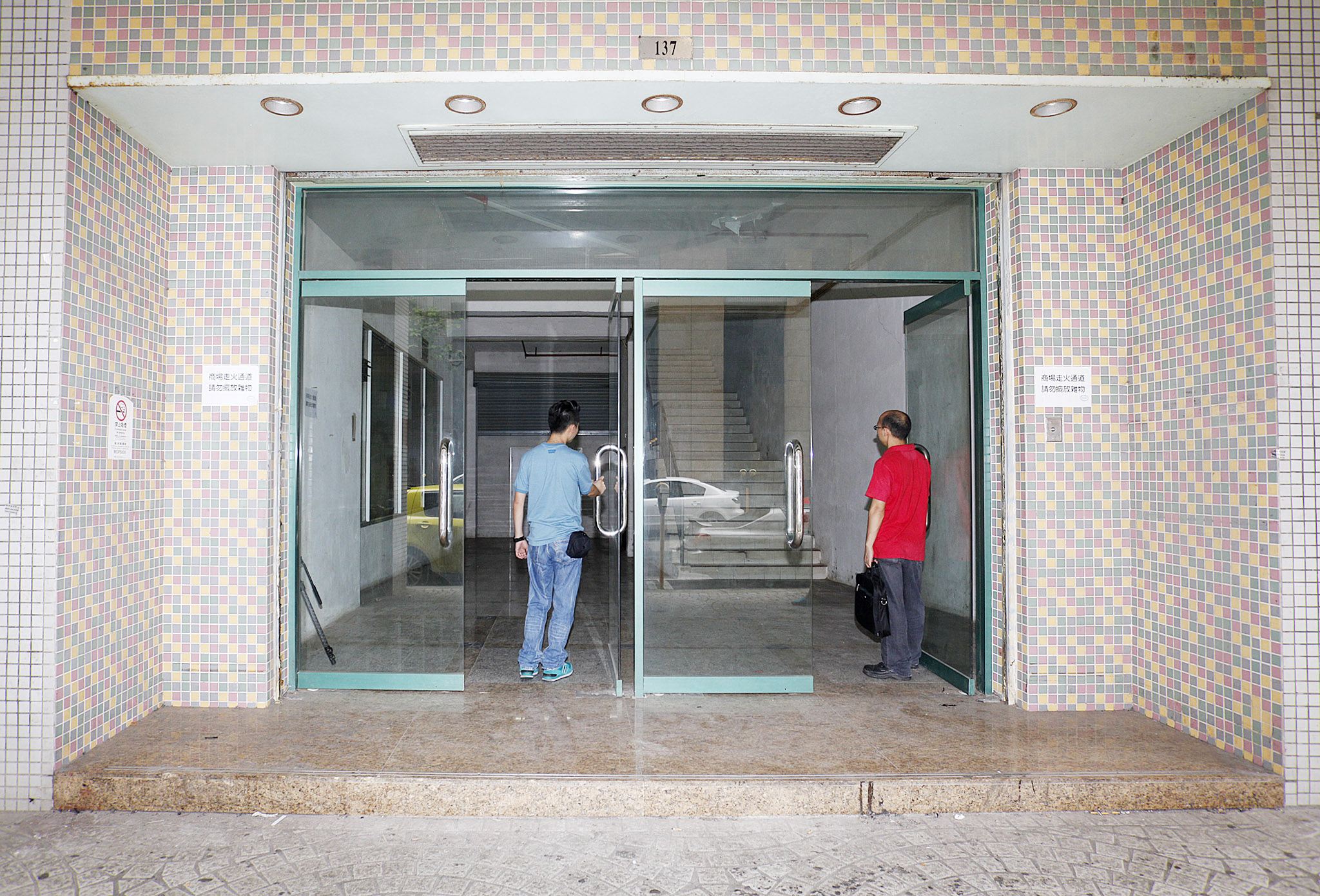 Conforme ficou comprovado pela DSSOPT, após comparação com a tela final do edifício, a parte central confrontada com a loja comercial faz parte da sua área privada, não fazendo assim parte comum do edifício, contudo as laterais da loja comercial pertencem à parte comum do edifício. A fim de não afectar o caminho de evacuação, foi exigido ao arrendatário a remoção dos materiais e objectos depositados no acesso comum do edifício e o destrancamento dos portões localizados nas lateriais.