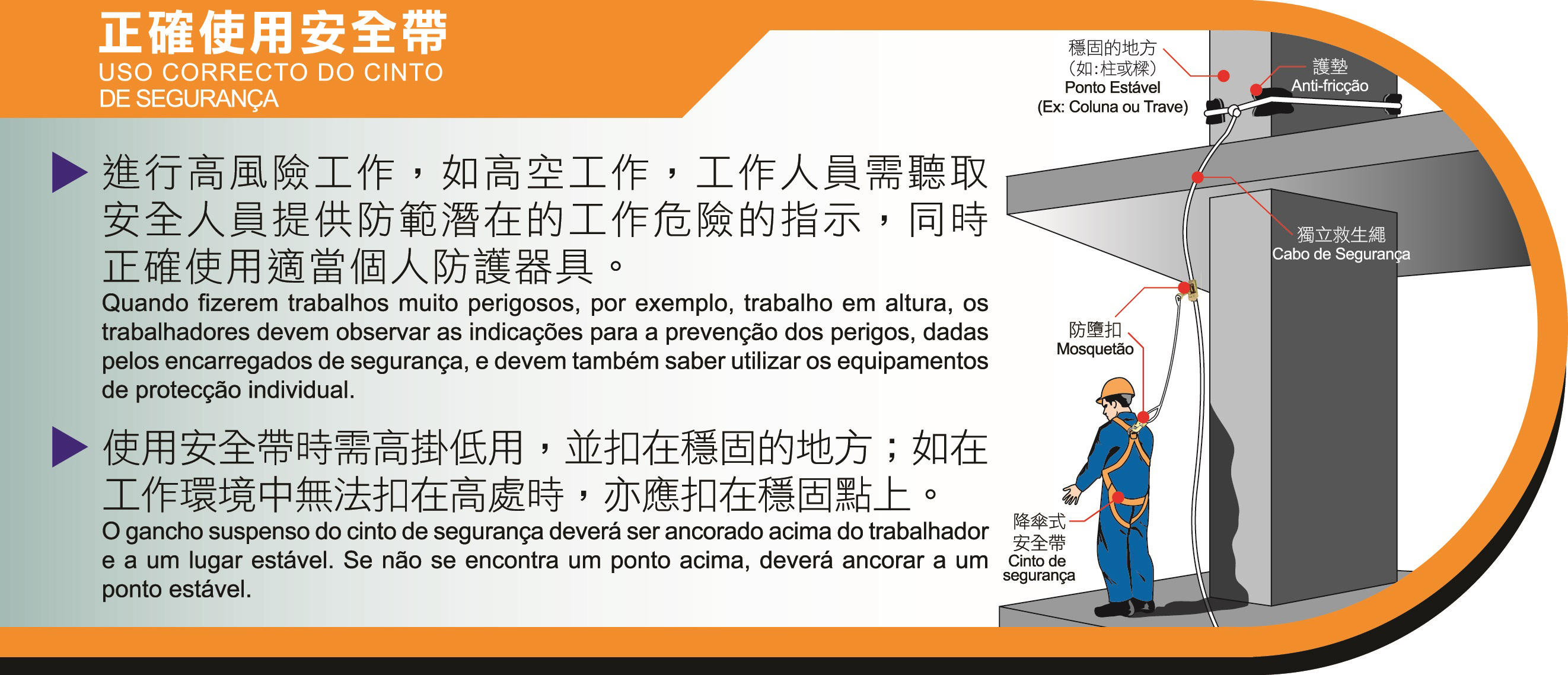 Nos termos do disposto no “Regulamento de Higiene e Segurança no Trabalho da Construção Civil de Macau”, considera-se trabalho em altura todo o trabalho realizado a uma altura igual ou superior a 2 metros a contar do pavimento. Os trabalhadores do sector de decoração ou construção realizam frequentemente trabalhos em altura, sendo diversos os riscos de trabalho, nomeadamente, queda de pessoas e de objectos. Entre os meses de Janeiro e Julho do corrente ano, a Direcção dos Serviços para os Assuntos Laborais (DSAL) aplicou imediatamente 9 sanções por violação aos preceitos regulamentares sobre segurança e saúde ocupacional, causando a queda de pessoas e de objectos.