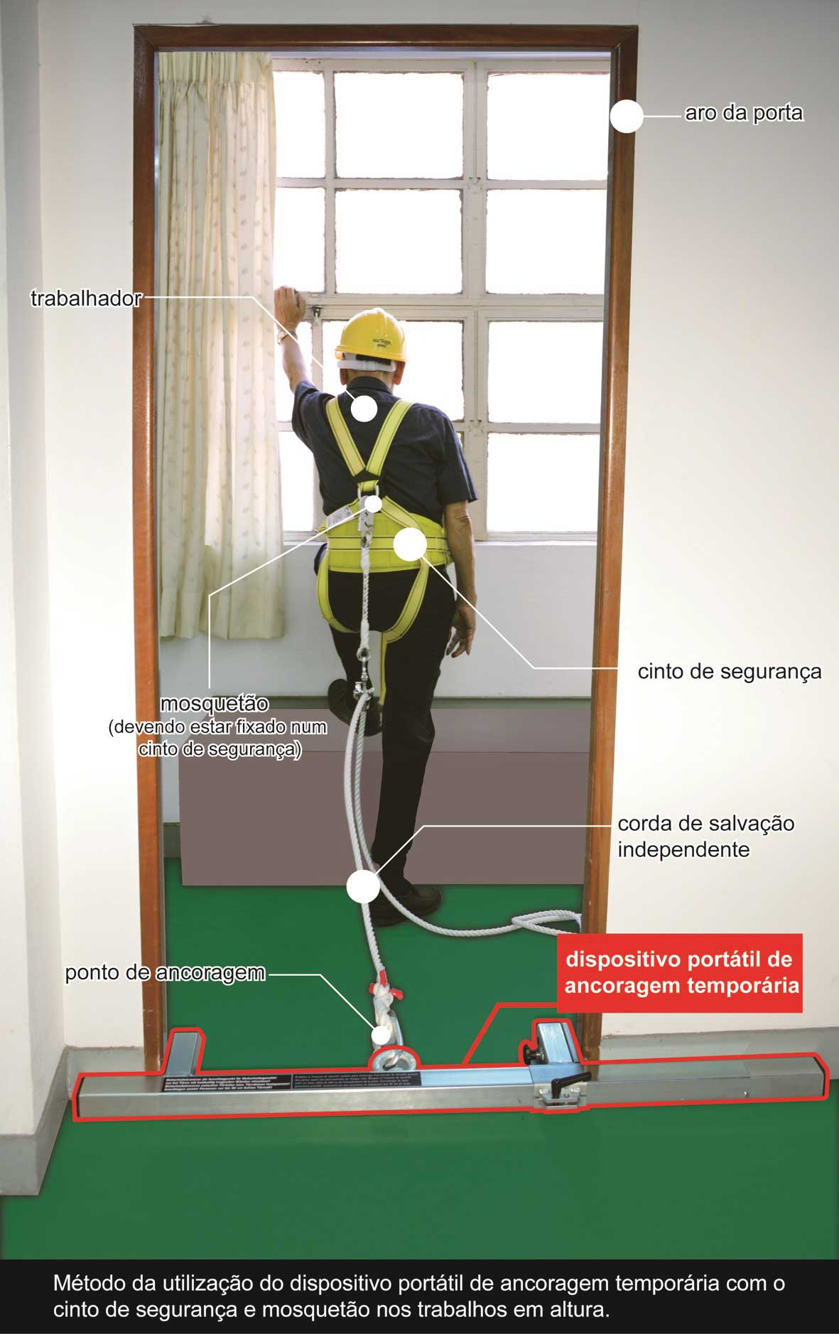5. Usar dispositivos portáteis de ancoragem temporária em locais de trabalho com obras de decoração interior, onde não haja pontos de ancoragem estável.