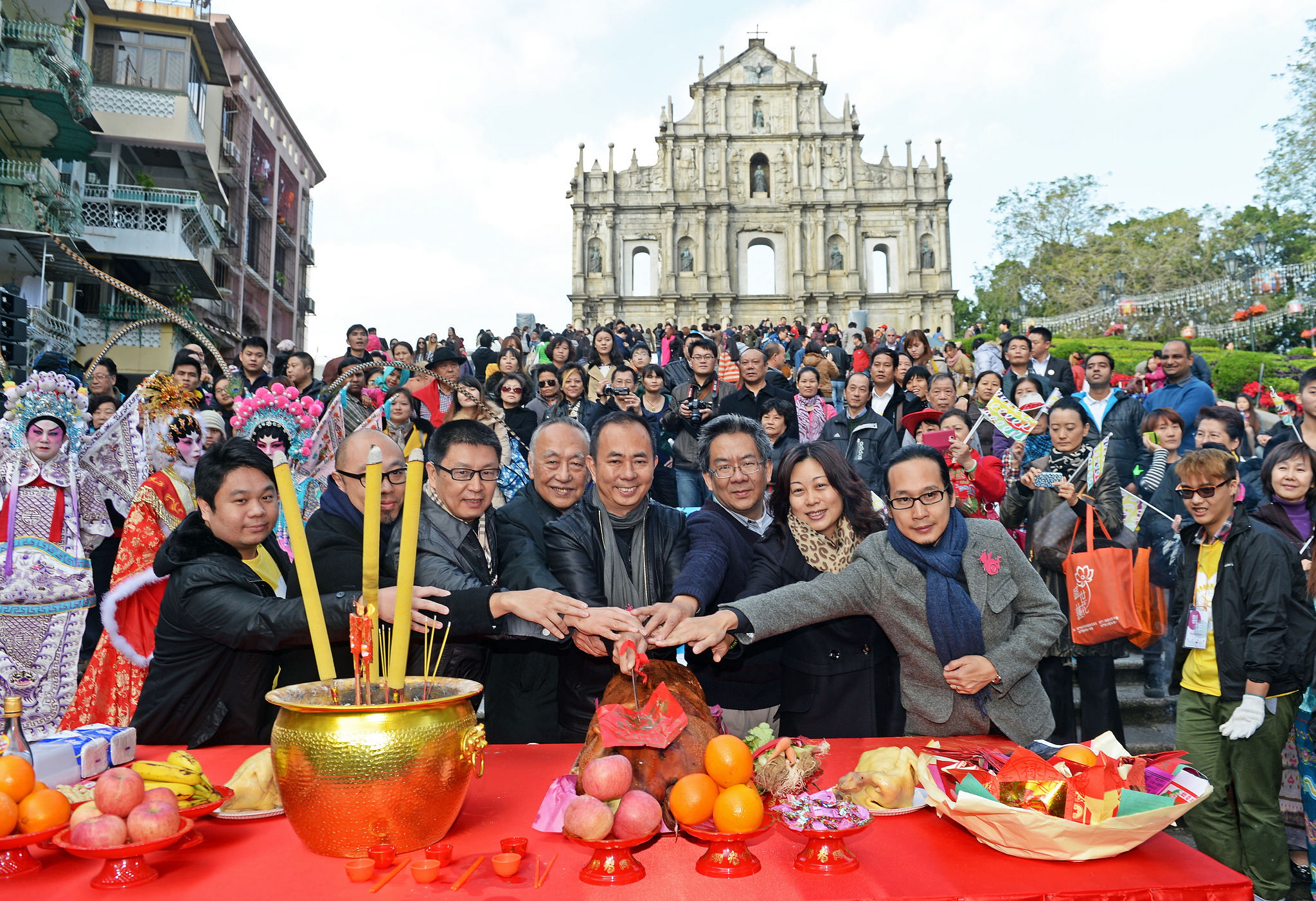 Em comemoração do 14.º aniversário da Transferência da Administração de Macau para a China, o Instituto Cultural (IC) organiza mais uma vez, em colaboração com vários departamentos públicos e associações, o “Desfile por Macau, Cidade Latina”, cuja cerimónia de bênção teve lugar no dia 18 de Dezembro, nas Ruínas de São Paulo. Durante a cerimónia, a actuação da dança do leão captou a atenção de grande número de residentes e turistas, animando este sítio do património mundial. Participaram na cerimónia o Presidente do IC, Ung Vai Meng; o Presidente do Conselho de Administração da Associação de Macau para a Promoção de Intercâmbio entre a Ásia-Pacífico e a América Latina, Gary Ngai Mei Cheong; os Vice-presidentes do IC, Leong Hio Ming e Yao Jinming; a Gerente-geral do Departamento de Marketing da Companhia de Transportes Aéreos Air Macau, Ge Lan; a equipa de directores artísticos italianos do Desfile; representantes dos grupos participantes e funcionários do IC.