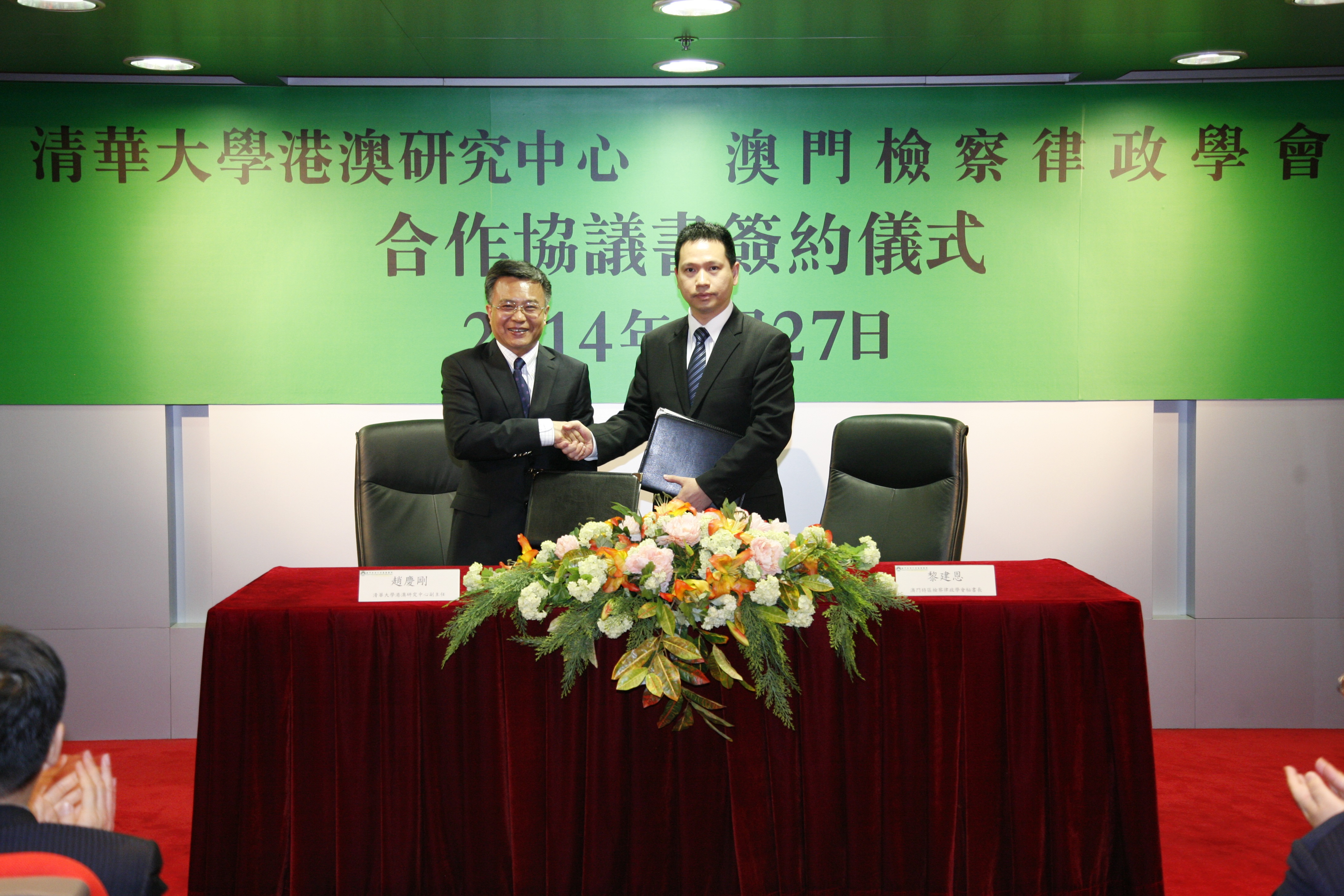O acordo foi assinado pelo secretário-geral da Associação da Justiça e da Procuradoria de Macau Lai Kin Ian e pelo vice-presidente do Centro de Estudos de Hong Kong e Macau da Universidade Tsinghua Zhao Qinggang. Na cerimónia da assinatura, o presidente honorário do Centro de Estudos de Hong Kong e Macau da Universidade Tsinghua Wu Minsheng e o vice-presidente do Comité Permanente da Assembleia Nacional Popular da Cidade Shenzhen Jiang Yuyang usaram a palavra, tendo afirmado que a par do desenvolvimento económico rápido dos dois territórios, têm sido verificadas muitas questões que necessitam de ser estudadas novamente. O presidente honorário Wu Minsheng mostrou-se convicto de que com a assinatura do acordo, será intensificado, no futuro, o intercâmbio de pessoal de ambas as partes, promovendo o desenvolvimento saudável da sociedade, enquanto que a convicção deixada pelo vice-presidente Jiang Yuyang é a do aperfeiçoamento aprofundado da construção da sociedade, com base no actual modelo de desenvolvimento económico, nomeadamente no âmbito do aperfeiçoamento jurídico e no sector económico e da prestação de serviços, com vista à intensificação da criação de sistemas e da criação jurídica, promovendo, deste modo, a internacionalização do país.
