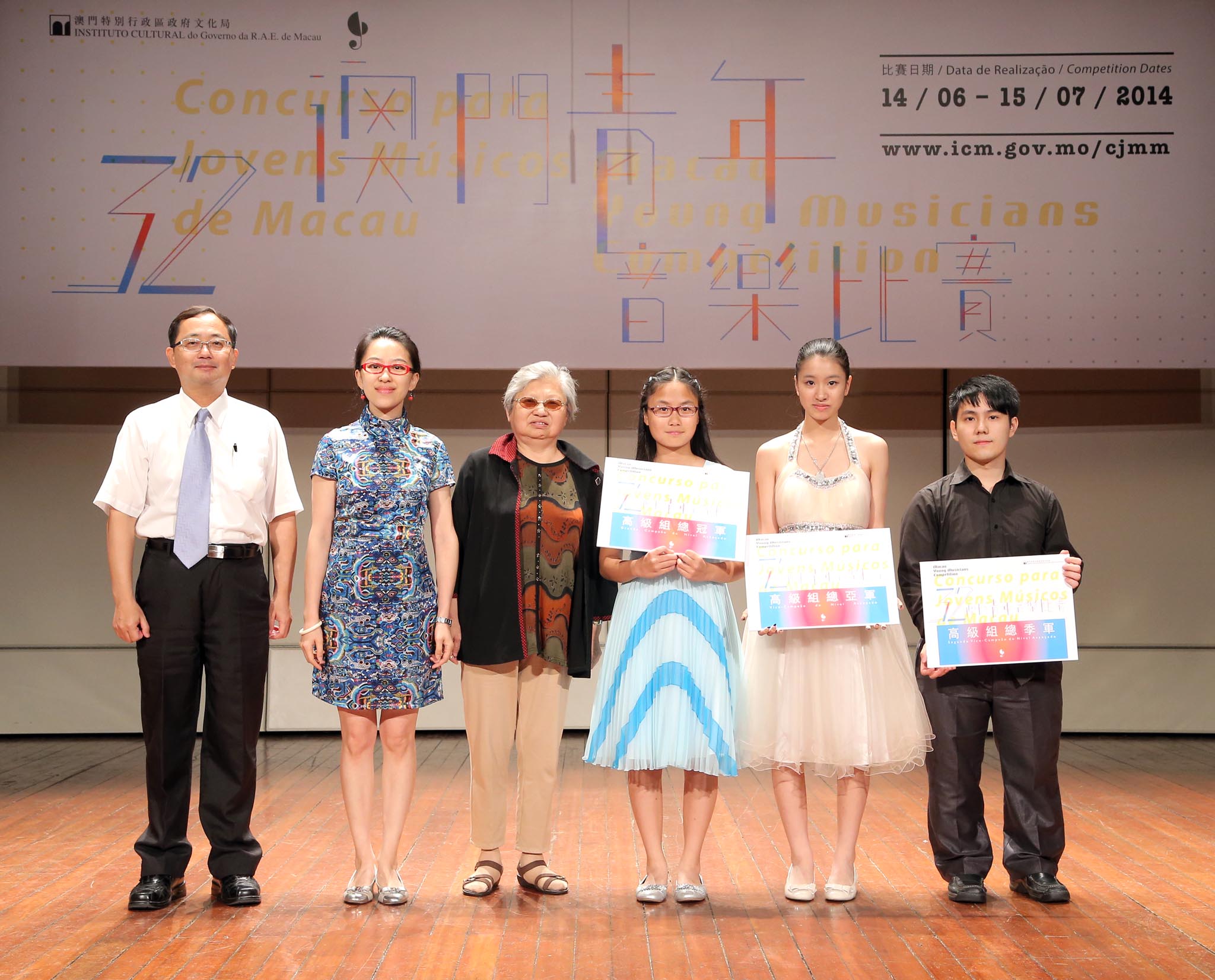 Nas finais do concurso, foram atribuídos um Prémio Instituto Cultural e prémios pecuniários aos vencedores dos 1.º, 2.º e 3.º lugares nas categorias a solo dos níveis Elementar, Intermédio e Avançado, assim como o Prémio de Melhor Actuação para Agrupamento. O Prémio Instituto Cultural foi concedido a um de três grandes campeões das finais das categorias a solo nos níveis Elementar, Intermédio e Avançado, o qual tinha foi seleccionado pelo júri por meio de votação. Este prémio consiste num certificado e numa bolsa de estudo para um programa de bacharelato na área da actuação musical (instrumentos musicais ou voz), cujo valor é equivalente ao valor das propinas do primeiro ano. Para mais informações sobre todas as provas do Concurso, é favor consultar o sítio web: www.icm.gov.mo/cjmm.