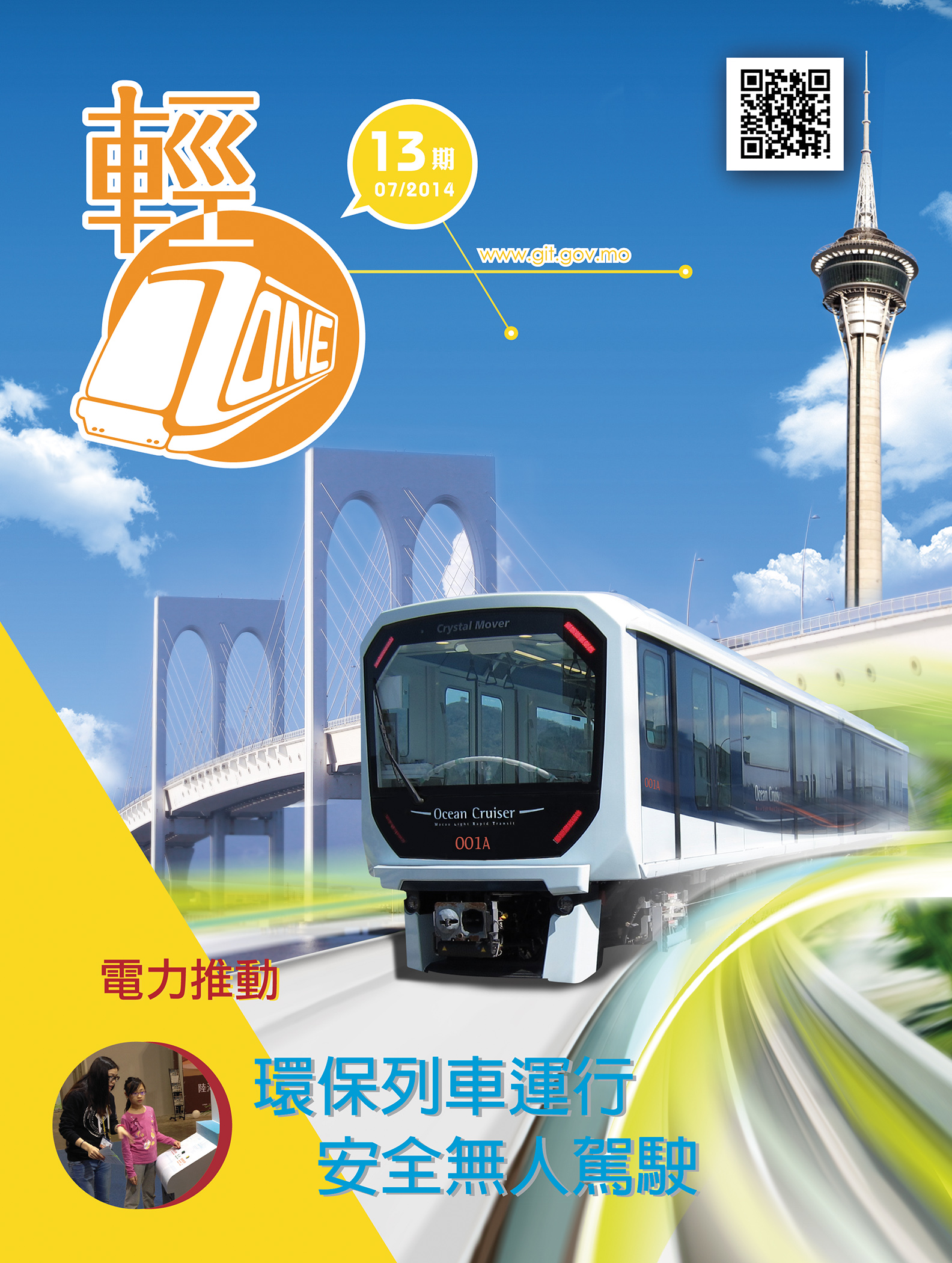 A 13.ª edição da revista trimestral “LRT Zone” já foi publicada! Apresentou-se anteriormente que o comboio do Metro Ligeiro entrou na fase de fabricação em série, assim, se vocês saibam a forma do funcionamento desses comboios após a sua chegada a Macau? Esta edição da revista “LRT Zone” permite aos leitores conhecer as diversas áreas sobre o funcionamento do Metro Ligeiro, nomeadamente, partida dos comboios, direcção, condução sem condutor e outras informações, discutindo em conjunto as formas de integração no seu projecto dos conceitos de protecção ambiental e conservação de energia, entre outros.
