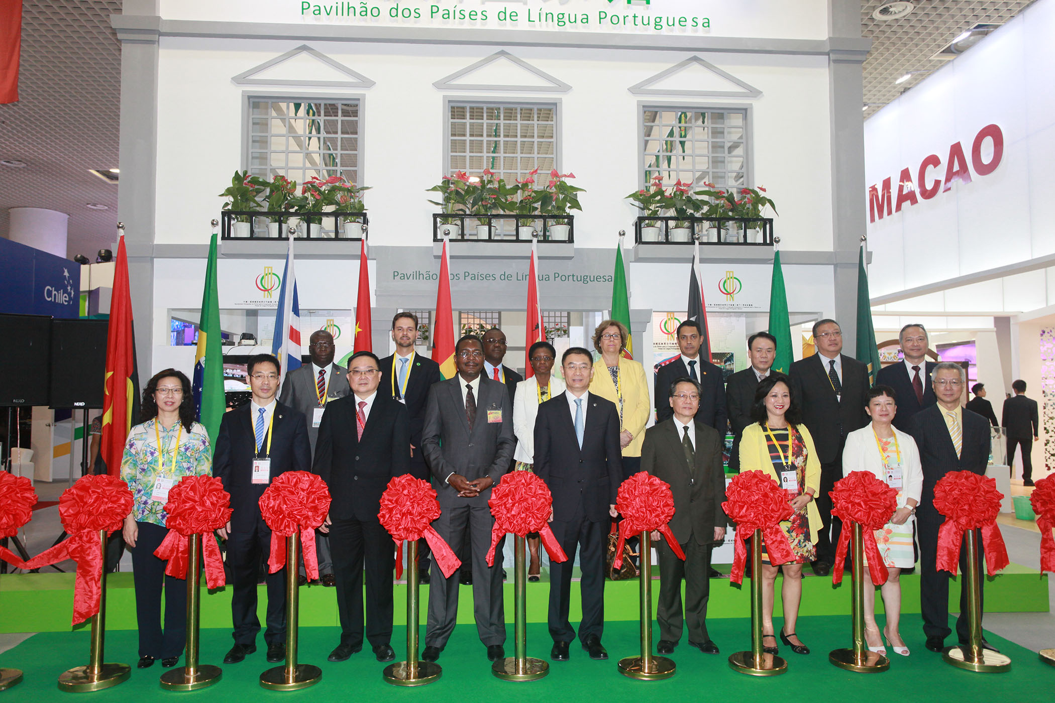 Na manhã do dia 8 de Setembro, o Vice-Director do Gabinete de Ligação do Governo Popular Central na RAEM, Dr. Yao Jian, o Secretário-Geral Adjunto do Secretariado Permanente do Fórum de Macau (indicado pelos Países de Língua Portuguesa), Dr. Vicente de Jesus Manuel, o Presidente da Comissão Executiva da Associação Comercial de Macau, Dr. Kou Hoi In, a Secretária-Geral Adjunta do Secretariado Permanente do Fórum de Macau (indicada pelo Governo da RAEM), Dra. Rita Santos, o Director do Departamento para os Assuntos Económicos do Gabinete de Ligação do Governo Popular Central na RAEM, Dr. Wang Xindong, o Presidente do Instituto de Promoção do Comércio e do Investimento de Macau, Dr. Jackson Chang, a Vogal Executiva do Instituto de Promoção do Comércio e do Investimento de Macau, Dra. Irene Lau, a Coordenadora do Gabinete de Administração do Secretariado Permanente do Fórum de Macau, Dra. Zhang Jie e o Vogal da Comissão para o Desenvolvimento do Sector de Convenções e Exposições, Dr. Wong I Mun, presidiram à “Cerimónia da corte de fita para a abertura do Pavilhão dos Países de Língua Portuguesa”. Após da cerimónia, os convidados visitaram o Pavilhão e fizeram trocas de impressões sobre as oportunidades de investimento e a utilização do papel de Macau como plataforma de serviços com os delegados dos Países de Língua Portuguesa e os empresários.