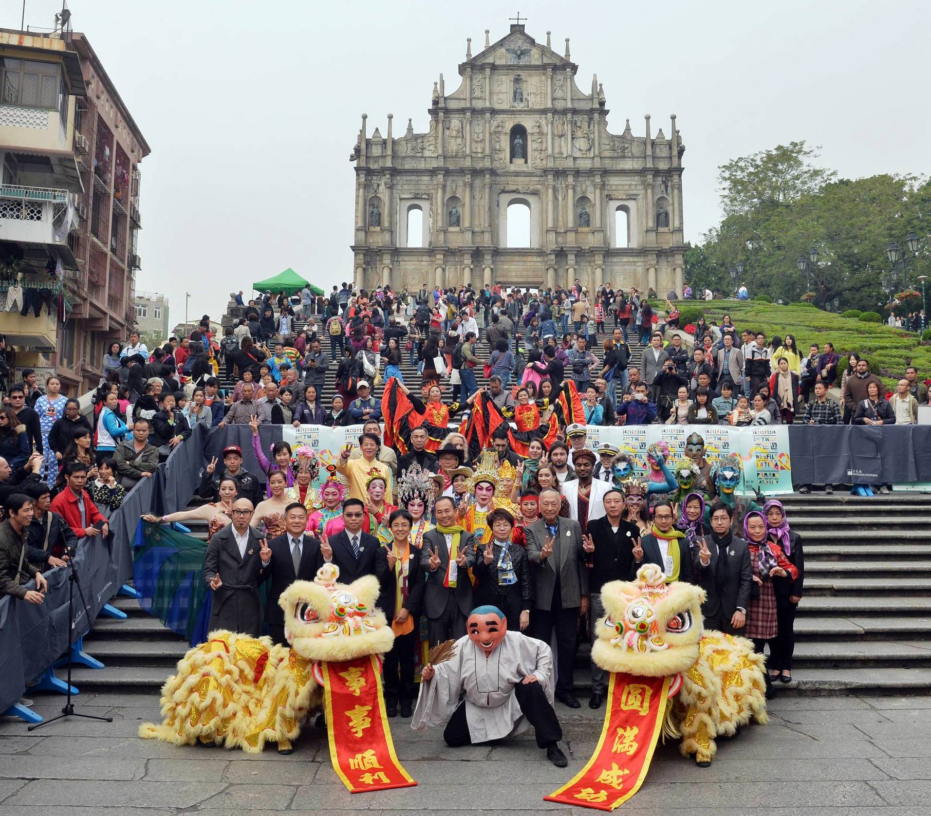 Organizada pelo Instituto Cultural, em cooperação com outros departamentos governamentais e entidades civis, no âmbito do “Desfile por Macau, Cidade Latina”, em comemoração do 15.º aniversário da transferência da administração para a China, teve lugar uma cerimónia de bênção nas Ruínas de S. Paulo, no Largo da Companhia de Jesus, no dia 11 de Dezembro, contando com actuações da Dança do Leão e atraindo, com a sua atmosfera animada, inúmeros cidadãos locais e turistas.