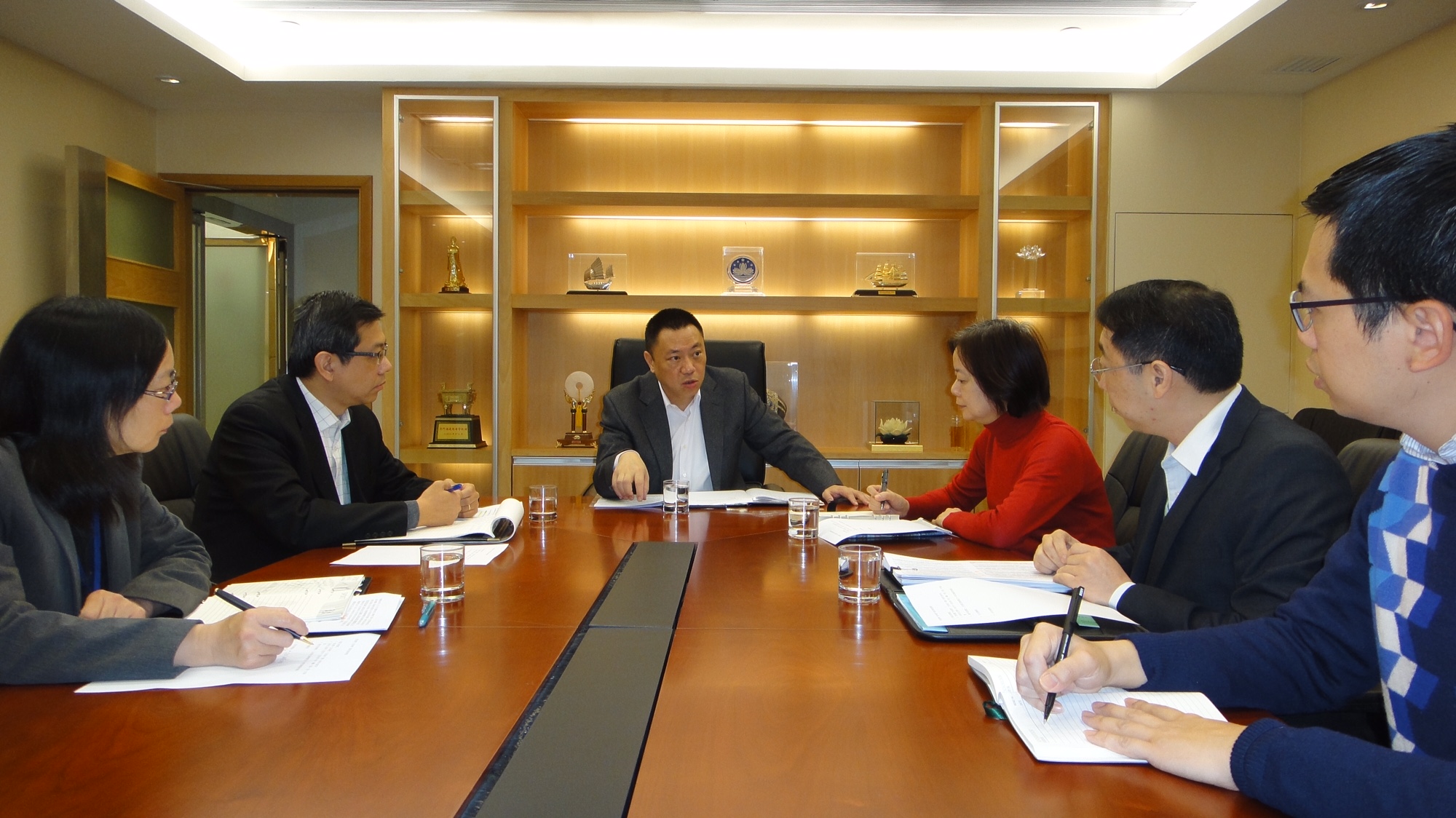 Em seguida, o Secretário para a Economia e Finanças, Dr. Leong Vai Tac, Director dos Serviços de Economia, Dr. Sou Tim Peng e o Vice-Presidente do Conselho de Consumidores, Dr. Chan Hon Sang realizaram uma reunião de emergência, discutindo a substituição, em breve, da declaração de importação dos produtos petrolíferos por regime de licenciamento, para que o Governo pudesse obter, a tempo, as informações sobre a importação desses produtos, divulgando-as à sociedade, em tempo oportuno, por forma a dar conhecer aos cidadãos, a situação concreta das variações dos preços dos produtos petrolíferos.