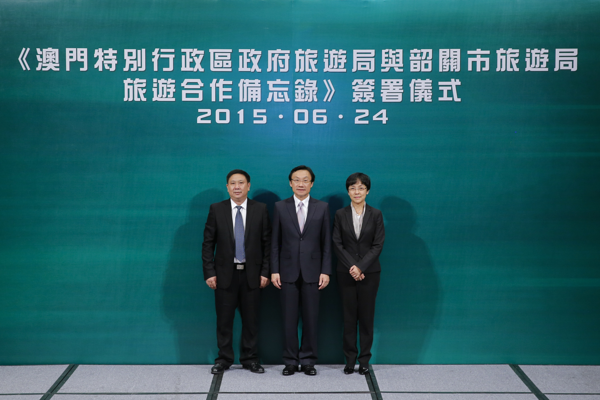 A cerimónia de assinatura do memorando foi testemunhada pelo Secretário para os Assuntos Sociais e Cultura (SASC), Alexis, Tam Chon Weng. O Memorando de Cooperação em Matéria de Turismo foi assinado pela directora da DST, Maria Helena de Senna Fernandes, e pelo director da Administração do Turismo de Shaoguan da Província de Guangdong, Wen Qingnian. A cerimónia contou também com a presença do chefe do Gabinete do SASC, Lai Ieng Kit, do assessor do Gabinete do SASC, Charles Lam, da subdirectora da DST, Cecilia Tse, do subdirector da Administração do Turismo de Shaoguan, Chen Zhongyao, entre outros convidados.