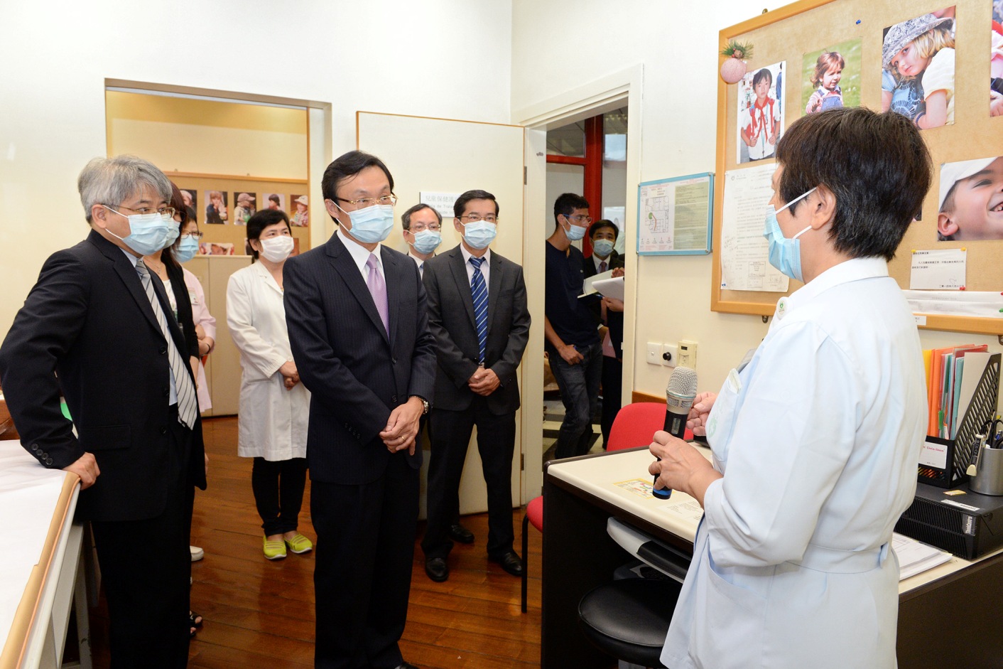 A visita do Senhor Secretário Dr. Alexis Tam contou também a participação da subdirectora dos Serviços de Saúde, Dra. Ho Ioc San, Assessores do Gabinete do Secretário para os Assuntos Sociais e Cultura, Dra. Lo Kin I, Lo Iek Long, Lam Io Pak, a coordenadora do Gabinete de Coordenação Técnica dos Cuidados de Saúde Generalizados, Dra. Kuok Chau Sha, enfermeira coordenadora, Fan Wong Iao Ha, que visitaram as instalações de diversos serviços, nomeadamente a sala de enfermagem, de saúde adulta, de saúde infantil e de saúde pré-natal, saúde das mulheres, entre outros, assim como auscultaram a apresentação dada pelos profissionais do Centro de Saúde.