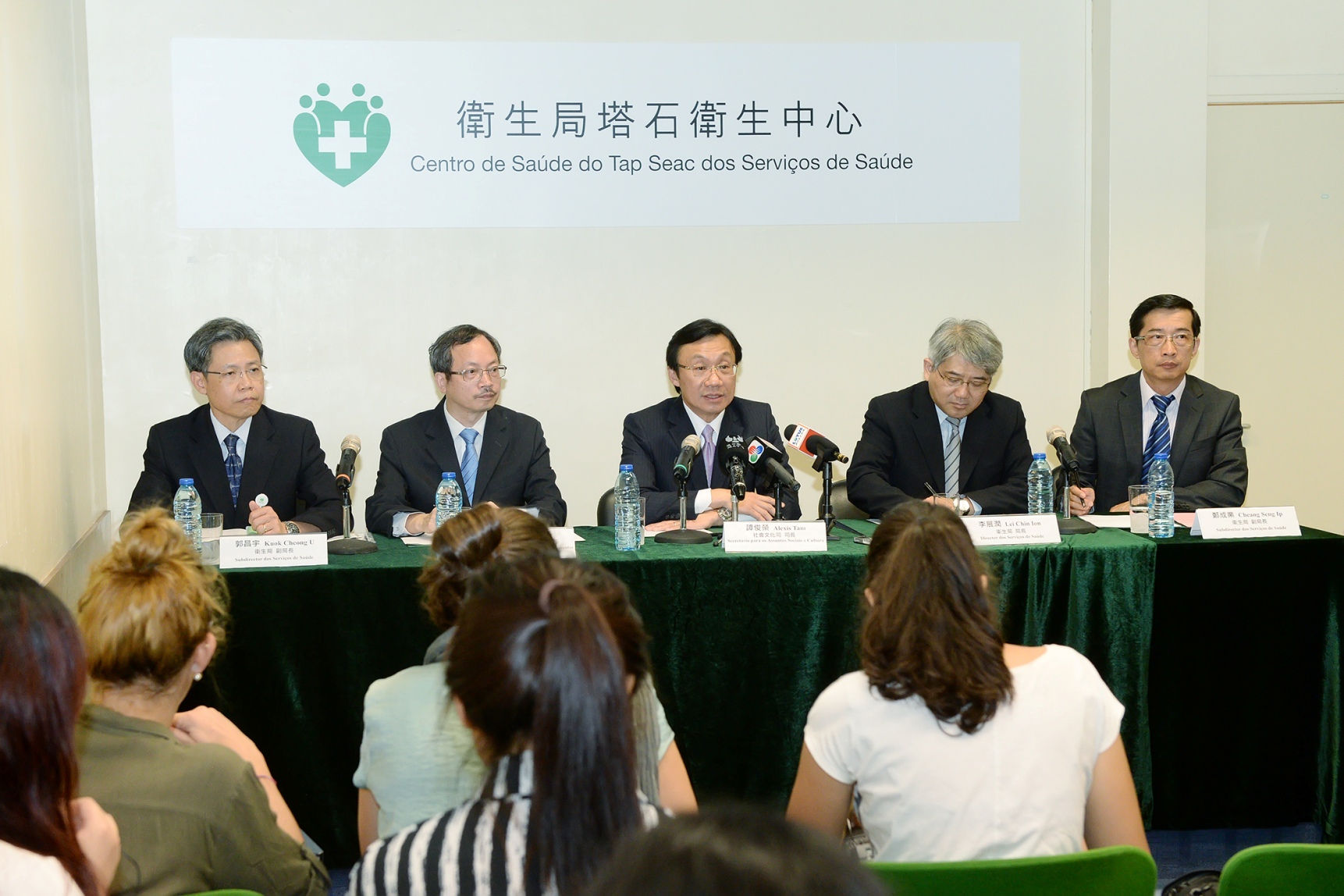 O Secretário para os Assuntos Sociais e Cultura, Dr. Alexis Tam visitou quarta-feira (dia 24 de Junho) o Centro de Saúde de Tap Seac para conhecer os serviços prestados , as instalações e equipamentos e auscultar as opiniões do público. A seguir, o Chefe do Gabinete do Secretário para os Assuntos Sociais e Cultura, Lai Ieng Kit, Director dos Serviços de Saúde, Dr. Lei Chin Ion, Subdirector dos Serviços de Saúde, Dr. Kuok Cheong U, Subdirector dos Serviços de Saúde, Dr. Cheang Seng Ip, reuniram-se com os meios de comunicação para fazer um balanço sobre uma série de medidas de optimização dos serviços de cuidados de saúde implementadas desde o início do corrente ano e anunciou que a partir do próximo dia 20 de Julho, o horário de funcionamento dos Centros de saúde de Tap Seac e do Jardim de Oceano será prolongado até 22h00, de modo a responder à procura da população e aperfeiçoar os serviços de assistência médica.