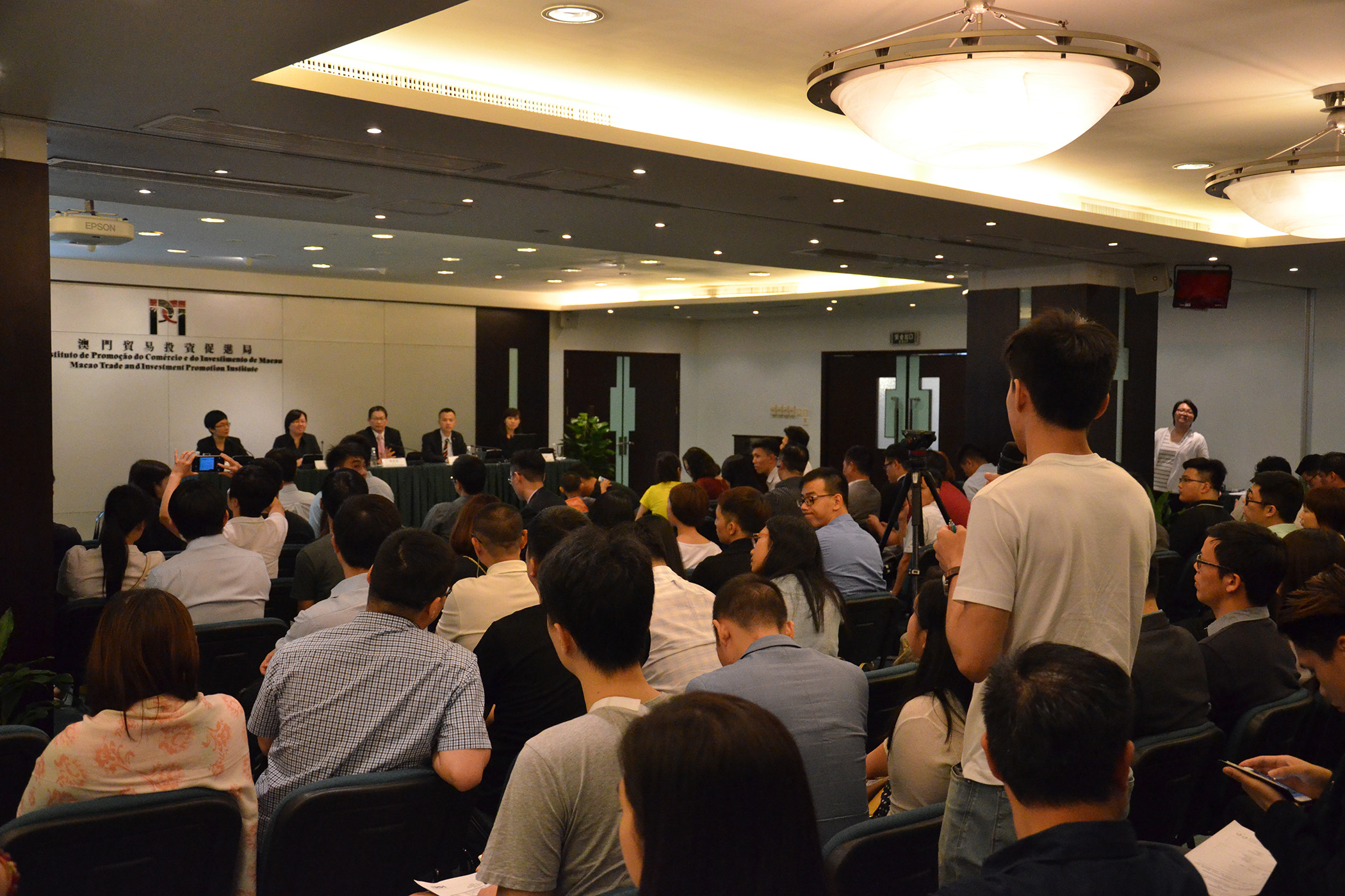 A sessão contou com presença de 100 participantes (representantes provenientes de associações juvenis e público), onde, durante a sessão de perguntas, os representantes da DSE, IPIM e CPTTM trocaram ideias com os participantes, bem como apresentaram detalhadamente e explicaram claramente os assuntos de apoio ao empreendedorismo que os jovens estão preocupados. Para mais pormenores sobre os serviços prestados e as medidas de apoio, contacte com o CINJ, através da sua linha aberta (tel. n.ºs 8798 9607 / 8798 9614) ou visualizar a coluna do “Centro de Incubação de Negócios para os Jovens” disponível na página electrónica da DSE. (http://www.economia.gov.mo)