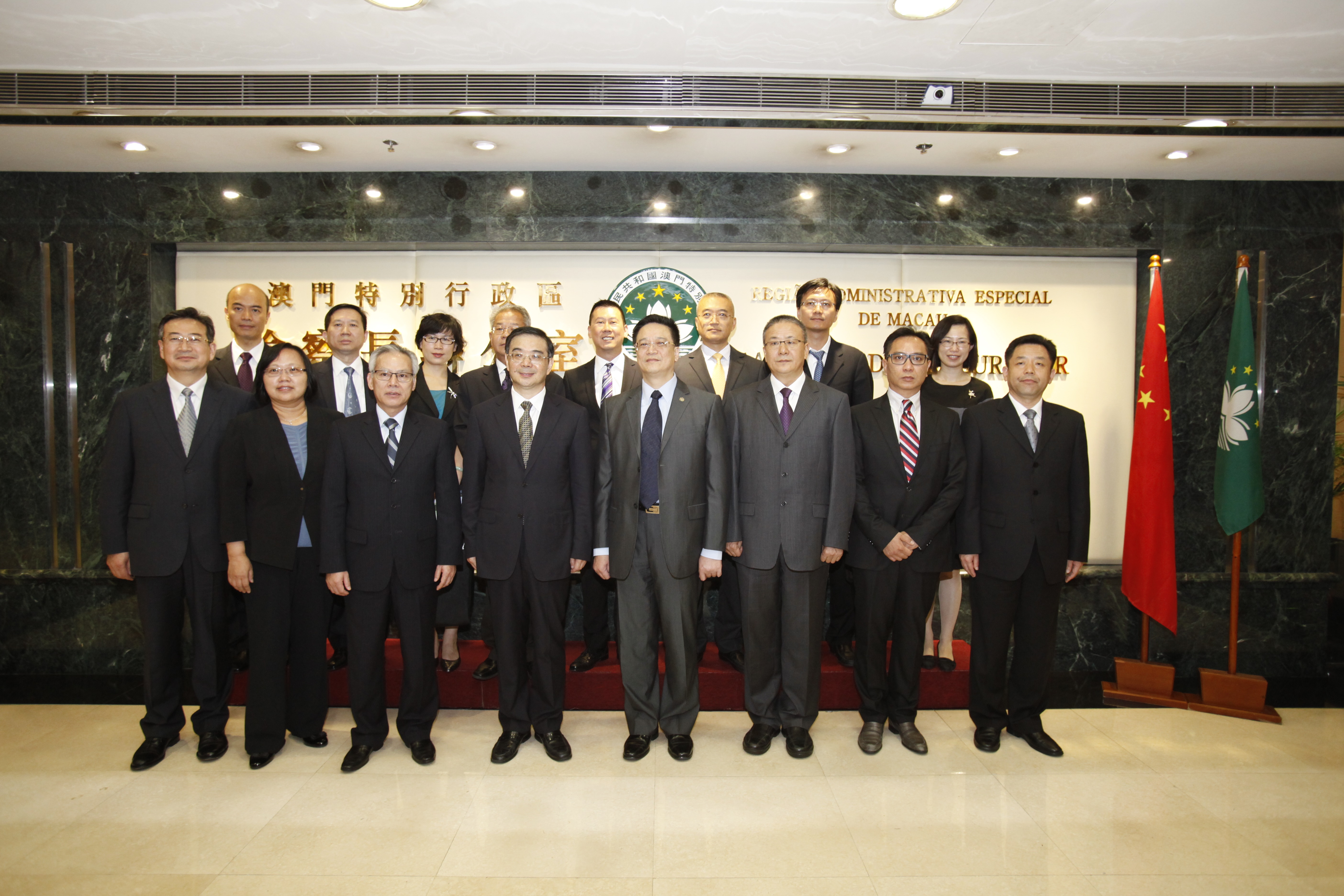A delegação dirigida pelo Presidente do Supremo Tribunal Popular, Dr. Zhou Qiang, foi acompanhada pelo Presidente do Tribunal da Última Instância da RAEM, Dr. Sam Hou Fai, e visitou o Ministério Público na tarde de 27 de Julho, onde foi recebida calorosamente pelo Procurador, Dr. Ip Son Sang, vários Procuradores-Adjuntos, o Chefe e a Chefe-Adjunta do Gabinete. Durante o encontro, discutiu-se sobre os sistemas judiciais bilaterais e práticas do trabalho judicial.