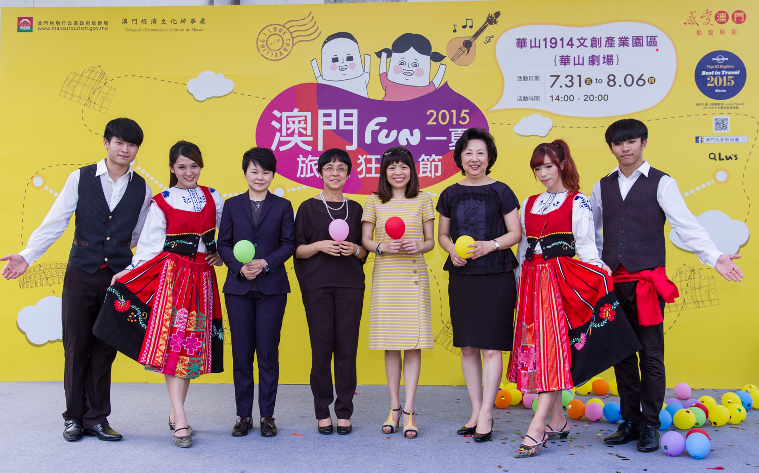 Ao longo de uma semana, o “Verão Divertido em Macau - Carnaval de Turismo” decorre no Parque Criativo Huashan 1914, em Taipé. A abertura da promoção foi inaugurada pela directora da DST, Maria Helena de Senna Fernandes, a chefe da Delegação Económica e Cultural de Macau em Taiwan, Nadia Leong, a chefe da Divisão de Mercados, Cora Vong, a par com a consultora de Relações Públicas da DST em Taiwan, Pauline Leung. O lançamento da promoção, além de jogos e espectáculos, contou também com a presença do famoso ilustrador online de Taiwan Lu’s, que na ocasião deu autógrafos para recordação dos visitantes, nesta que é a sua primeira colaboração com a DST.