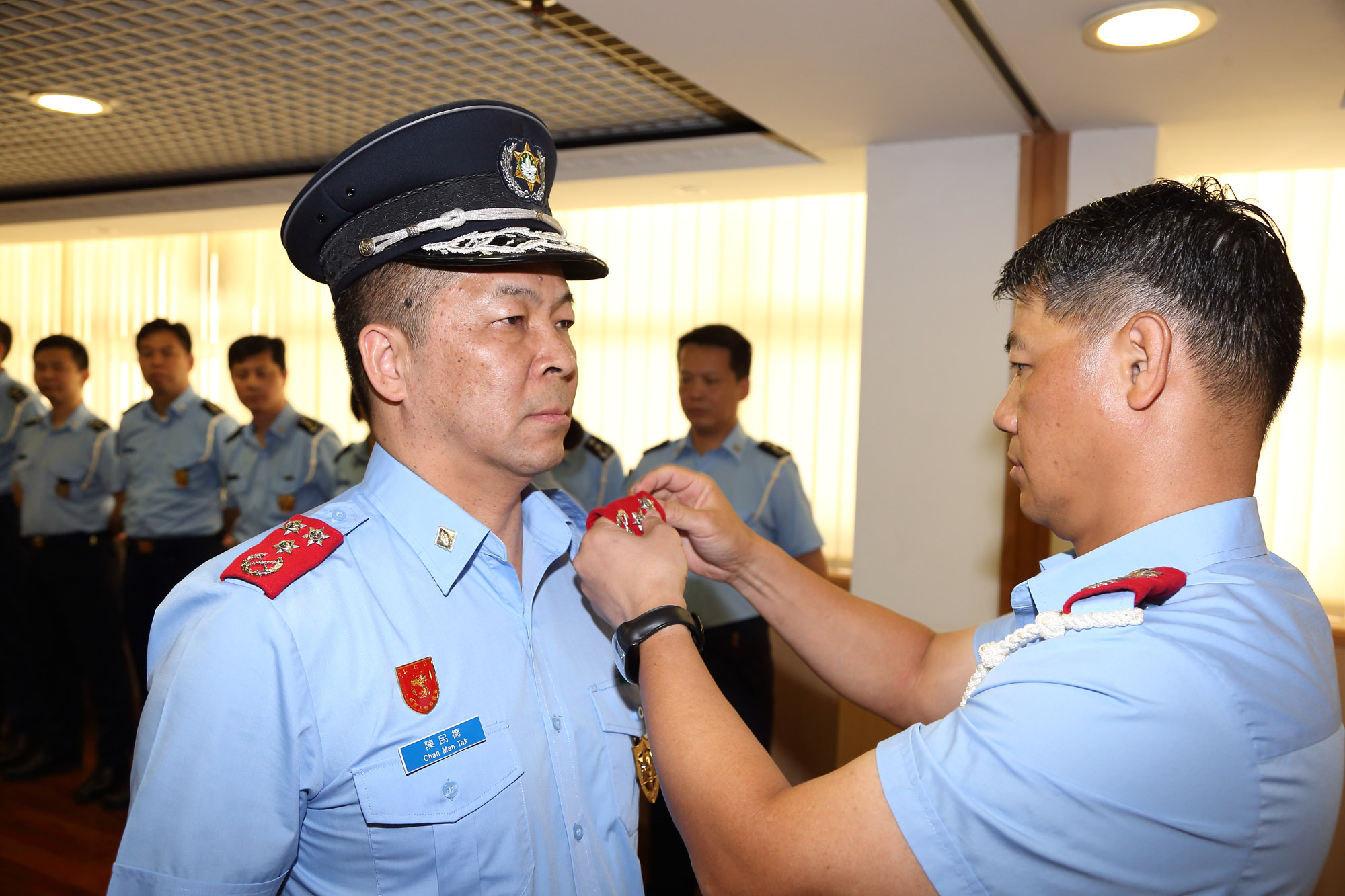 Os 2.os Comandantes Ng Kam Wa e Chan Man Tak têm ambos ricos conhecimentos profissionais, boas aptidões, elevada capacidade de liderança e excelente desempenho de funções, e foram, ainda, promovidos e louvados por várias vezes.