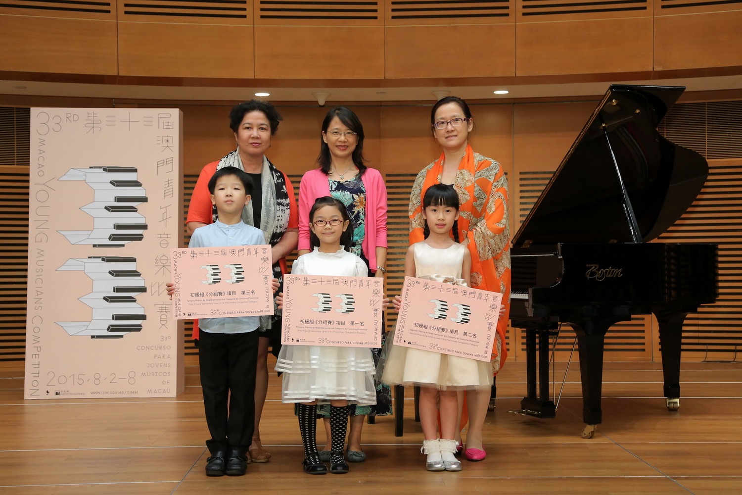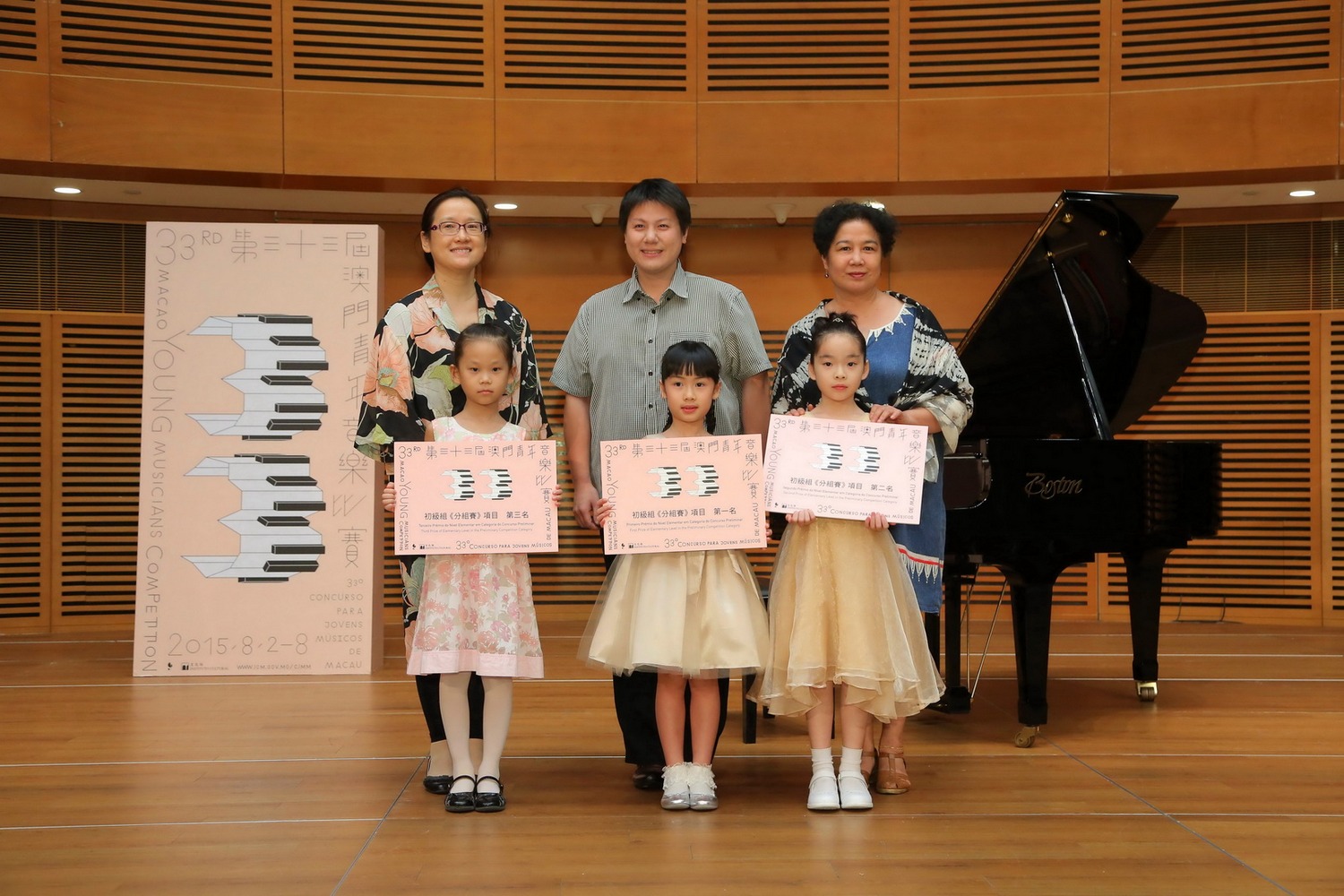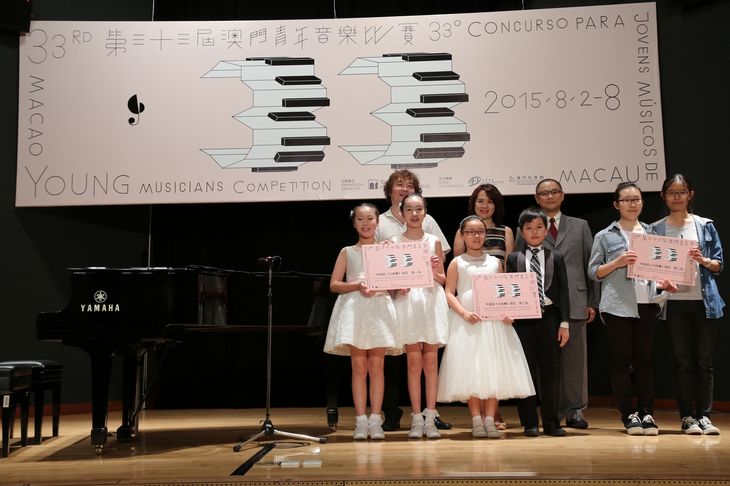 Piano a Quatro Mãos de Nível Intermédio: 1º lugar - Choi Long Cheng e Ho Chi Ieng; 2º lugar - Wong Iok Tong e Cheng Wai Ching; 3º lugar - Zhang Lai Wai e Chan Tek Chon;