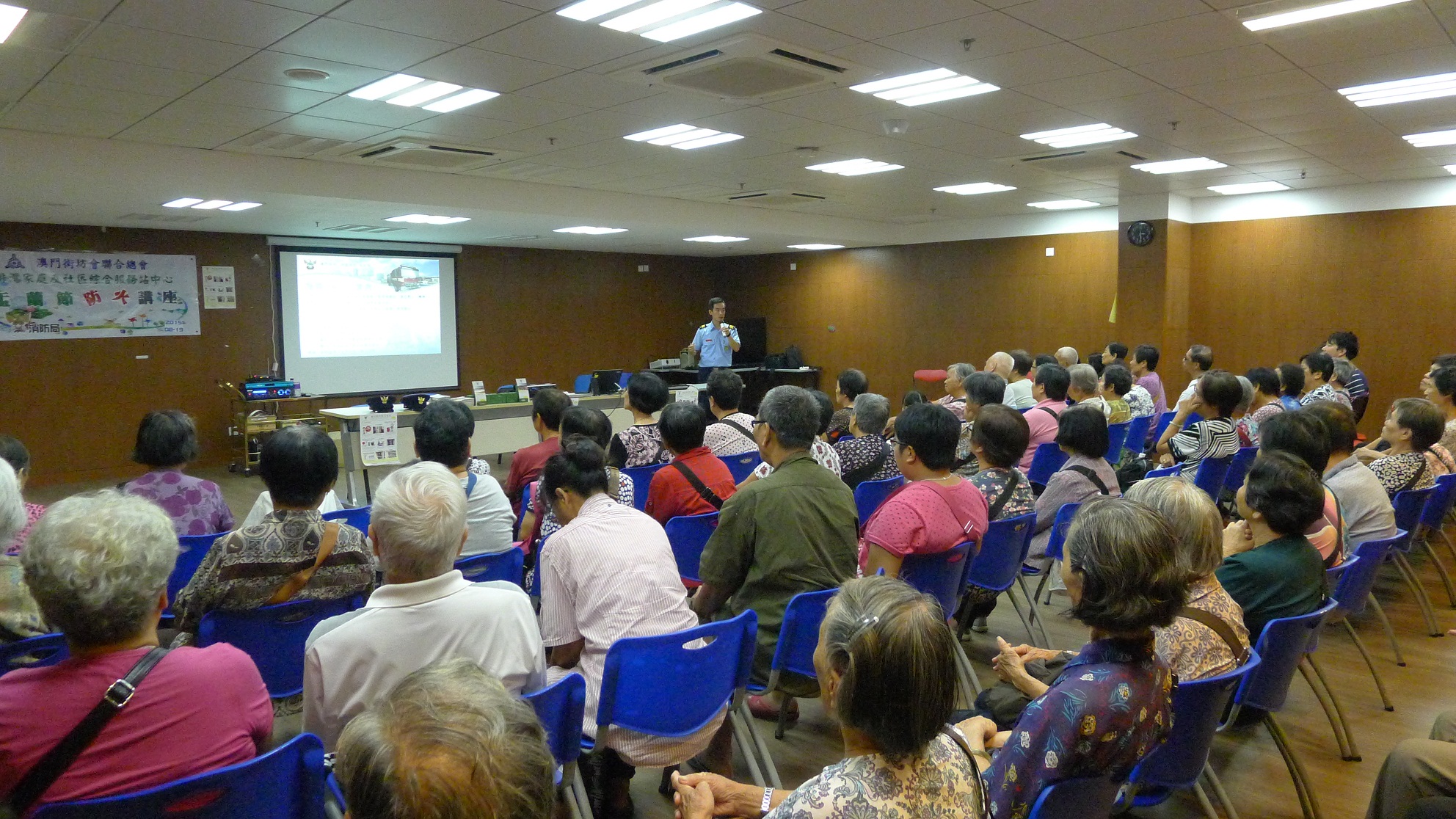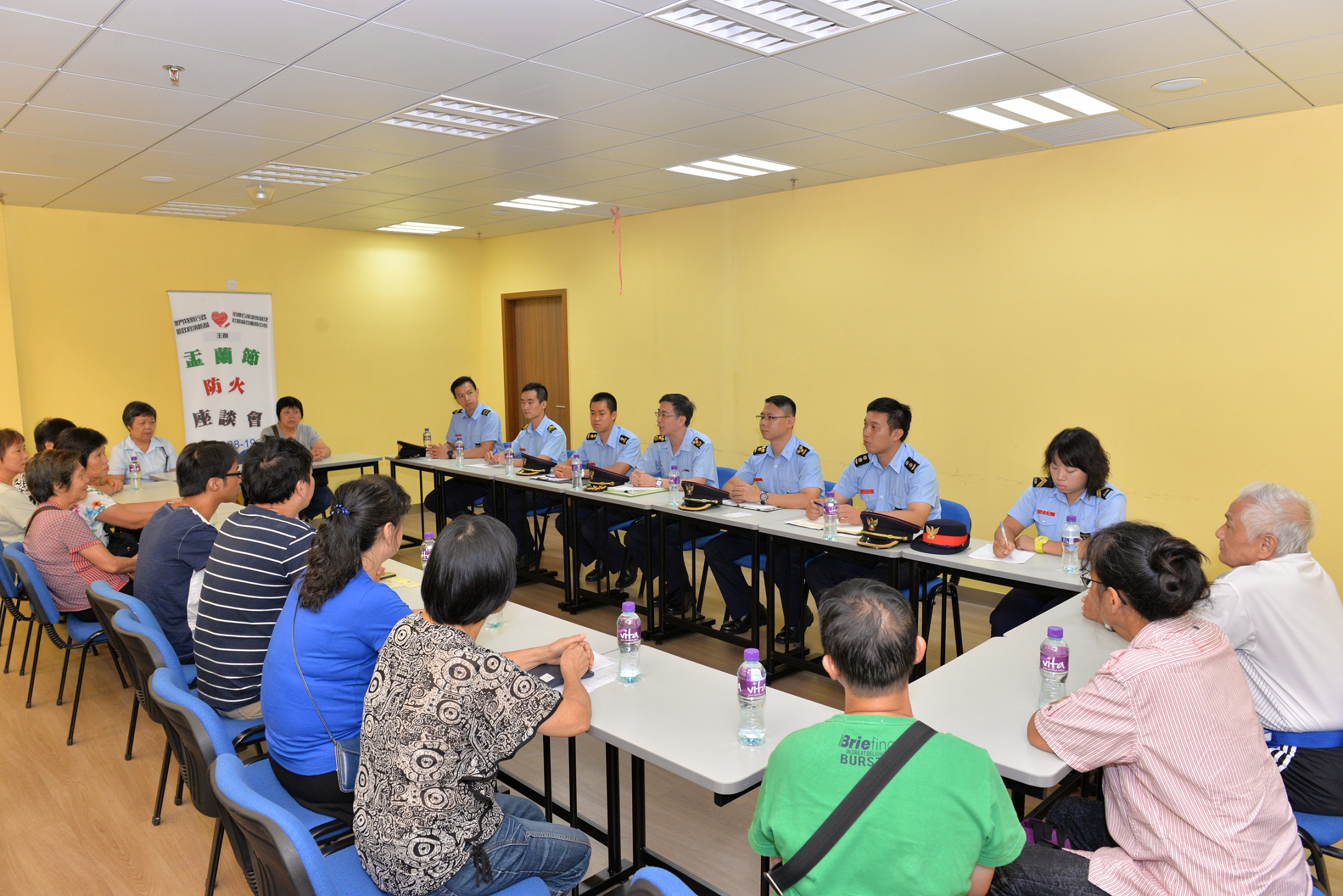 As actividades são desenvolvidas entre 17 de Agosto e 4 de Setembro, sendo distribuídos folhetos e cartazes aos residentes, turistas e lojas, respectivamente nas zonas da Areia Preta, Portas do Cerco, Ilha Verde, Iao Hon, Patane, Fai Chi Kei, Seac Pai Van e Vila de Coloane. Para penetrar mais nas comunidades e auscultar melhor a população, os nossos oficiais visitaram, hoje (19 de Agosto), o Complexo de Serviços para a Família e Comunidade de Seac Pai Van da União Geral da Associação dos Moradores de Macau, durante a qual foram apresentadas as acções de sensibilização da prevenção contra incêndios na Festa dos Espíritos Esfomeados e respectivos trabalhos preparatórios, sendo também realizada uma palestra sobre o tema destinada aos membros da Associação. Posteriormente, os voluntários ajudaram a distribuir materiais promocionais na zona.