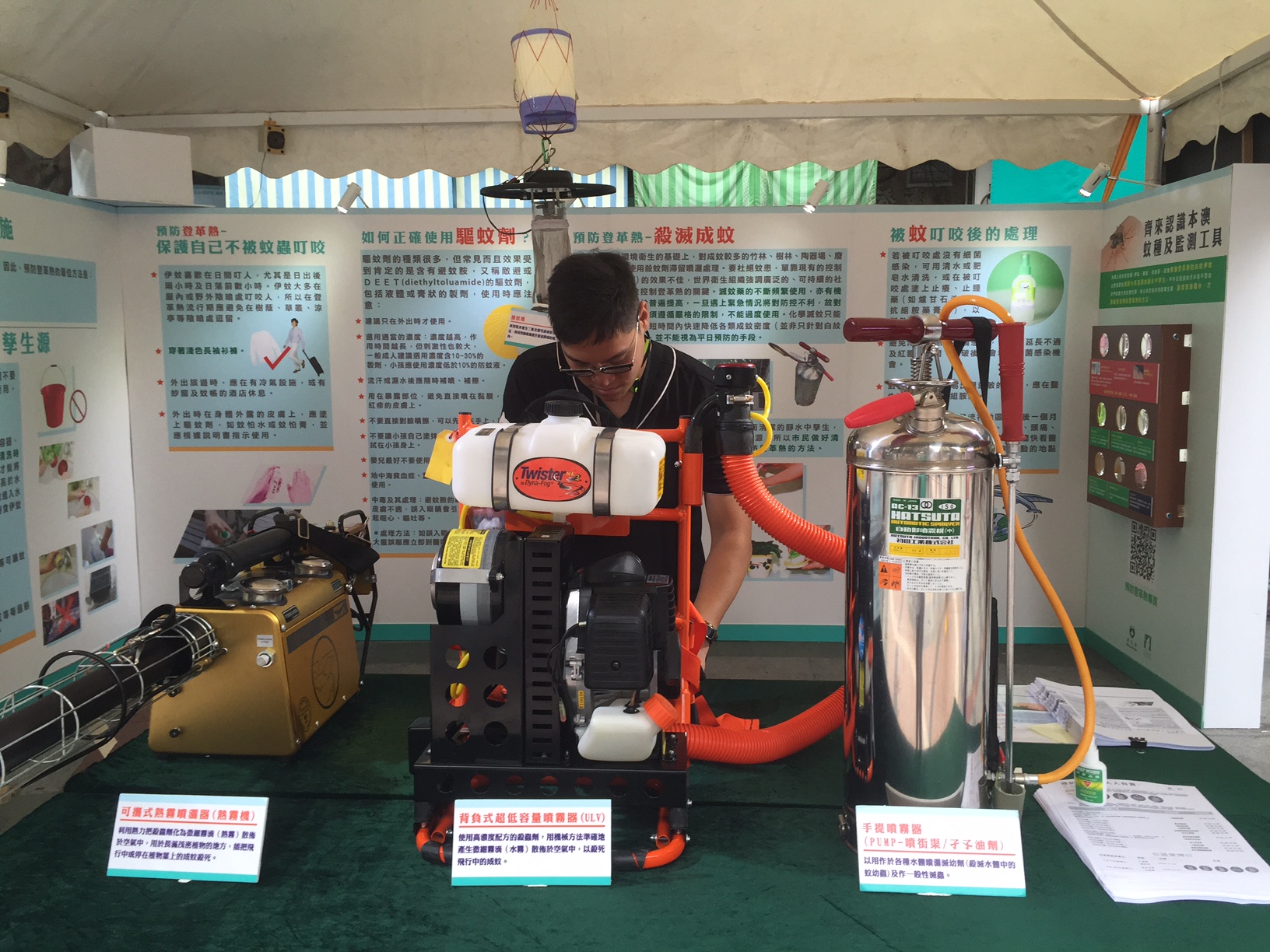 Entretanto, no âmbito de “Conhecer correctamente a extinção química de mosquitos - Exposição sobre a vigilância de mosquitos e os equipamentos para a extinção de mosquitos”, explica-se ao público que a extinção química de mosquitos é uma medida de contingência para reduzir rapidamente, dentro de um prazo muito curto, a densidade de mosquitos na sequência de risco de epidemia, e não como medida de prevenção radical.