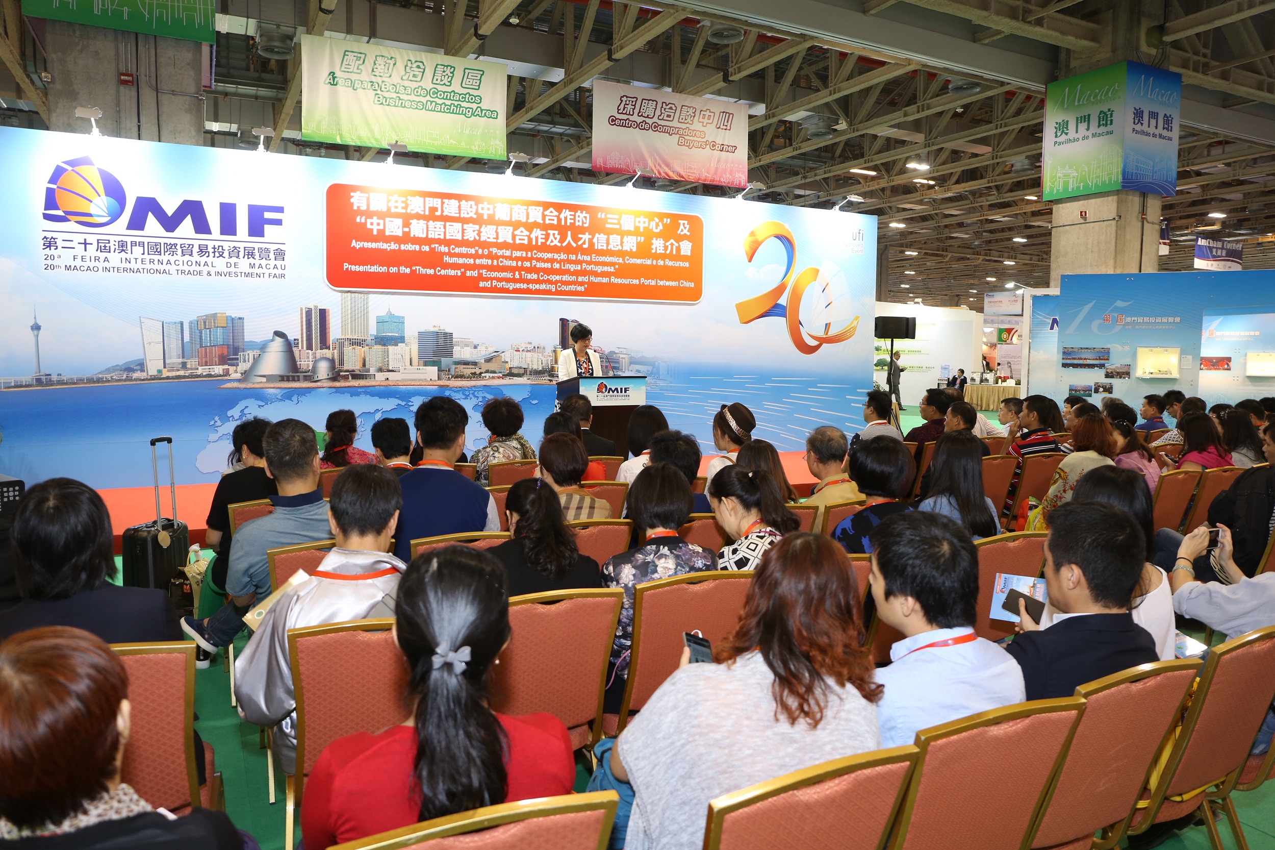 Com vista a articular e promover o desenvolvimento de Macau como plataforma de serviços para a cooperação económica e comercial entre a China e os Países de Língua Portuguesa, realizou-se nesta edição da MIF, diversos seminários de intercâmbio e de promoção entre diversas províncias e municípios do Interior da China e os Países de Língua Portuguesa, incluindo a “Cimeira para o Desenvolvimento Comercial e Industrial da Província de Jiangsu, Macau e dos Países de Língua Portuguesa”, o “Seminário para a Promoção da Cooperação entre Beijing, Macau e Países de Língua Portuguesa”, entre outros, tendo havido, no decorrer desses seminários, calorosos debates com vista a encontrar, em conjunto, oportunidades de negócio. No Seminário para a Promoção dos Três Centros e Uma Plataforma e Almoço para o Intercâmbio Económico com os Países de Língua Portuguesa e na Apresentação sobre os Três Centros e o Portal para a Cooperação na Área Económica, Comercial e de Recursos Humanos entre a China e os Países de Língua Portuguesa (ou “Portal de Informação”), foram salientadas as vantagens de Macau como plataforma de serviços para a cooperação económica e comercial entre a China e os Países de Língua Portuguesa, tendo-se também esclarecido as funções dos “Três Centros” e do “Portal de Informação”. Além disso, no Seminário sobre as Oportunidades de “Uma Faixa, Uma Rota” para o Empreendedorismo Juvenil de Macau, e no “Fórum Latino Americano: Extensão da estratégia “Uma Faixa, Uma Rota” – Como a antiga rota da sede marítima pode estreitar as relações entre a China e a América Latina com vista à Promoção a Integração Económica da Ásia e da América Latina e o Intercâmbio Cultural das duas Regiões”, foram analisadas, sob diferentes ângulos, as oportunidades e os desafios resultantes da implementação da estratégia “Uma Faixa, Uma Rota”. No “Fórum sobre Excelência na Obtenção de Bons Resultados dos Jovens Empresários Chineses Residentes no Ultramar”, foram debatidos questões relacionadas com o empreendedorismo juvenil, com partilha de experiência por parte dos jovens proeminentes.