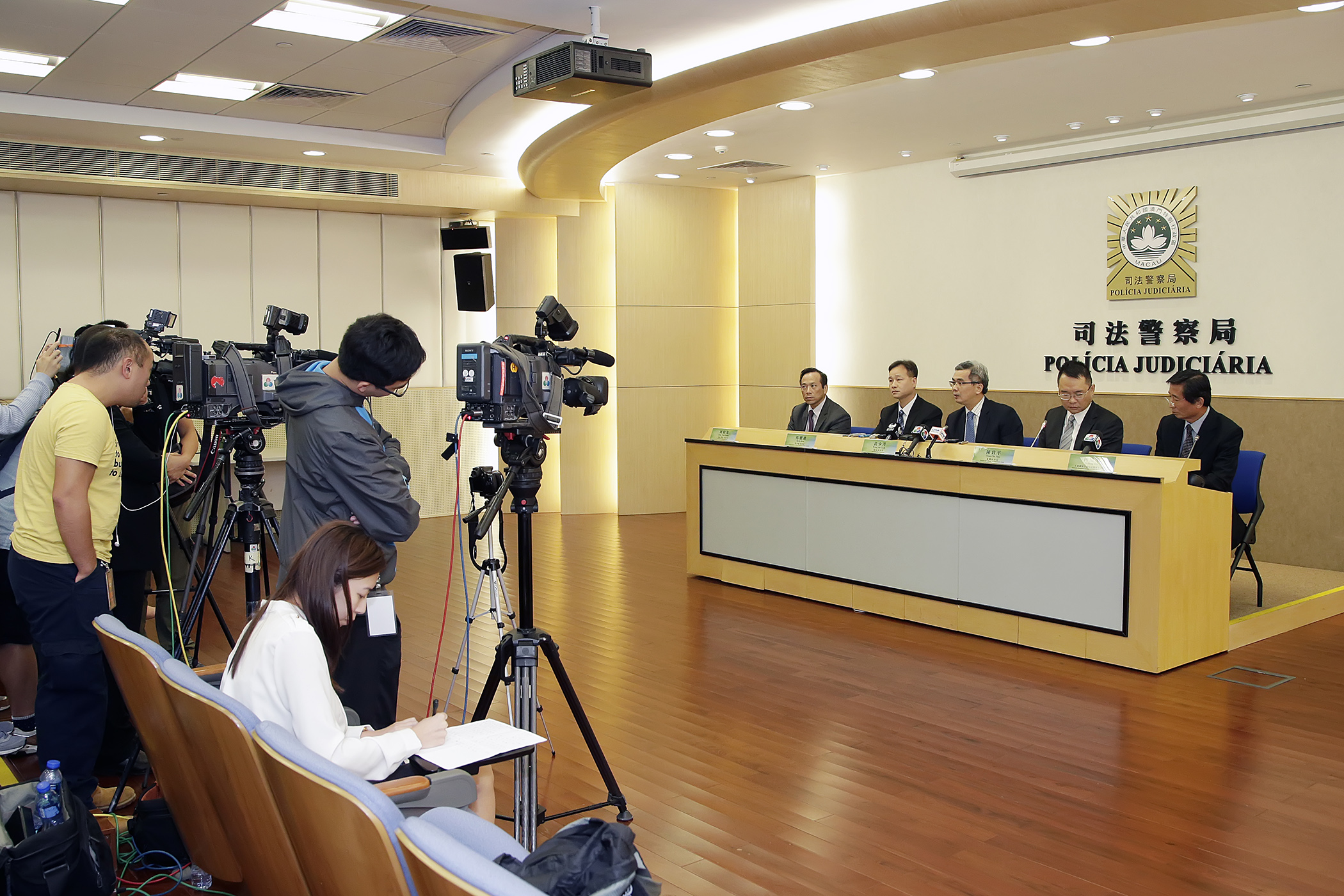 A conferência foi presidida pelo porta-voz do Governo, Victor Chan, e contou ainda com a presença de o secretário para a Segurança, Wong Sio Chak, Comandante-geral dos Serviços de Polícia Unitários, Ma Io Kun, director da Polícia Judiciária, Chau Wai Kuong e médico legista do Centro Hospitalar do Conde de São Januário (CHCSJ), O Heng Wa.