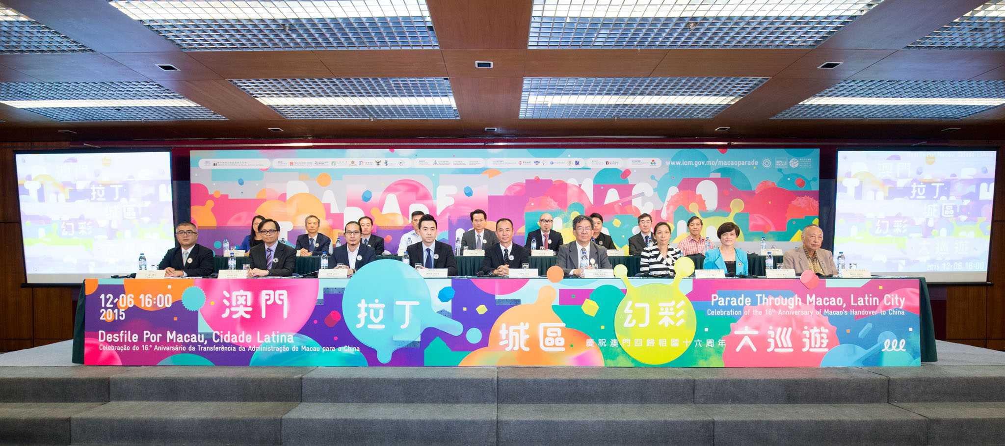 O Instituto Cultural realizou, a Conferência de Imprensa do “Desfile por Macau, Cidade Latina” no dia 5 de Novembro, pelas 15:00 horas, na Sala de conferências do 2.º andar do Centro de Actividades Turísticas, estiveram o Presidente do Instituto Cultural, Ung Vai Meng; o Vice-Presidente do Instituto do Desporto, Lau Cho Un; os Vice-Presidentes do Instituto Cultural, Leung Hio Ming e Chan Peng Fai; a Chefe do Departamento do Produto Turístico e Eventos da Direcção dos Serviços de Turismo, Doris Leong; o Chefe dos Serviços Culturais e Recreativos do Instituto para os Assuntos Cívicos e Municipais, Choi Chi Hong; o Chefe de Departamento de Juventude da Direcção dos Serviços de Educação e Juventude, Un Hoi Cheng; o Chefe Principal do Corpo de Bombeiros, Wong Kin; o Presidente da Associação para a Promoção de Intercâmbio entre a Ásia-Pacífico e a América Latina de Macau, Gary Ngai Mei Cheong; o Chefe do Departamento de Acção Cultural do Instituto Cultural, Kent Ieong Chi Kin; o Chefe, Substituto do Departamento de Promoção das Indústrias Culturais e Criativas do Instituto Cultural, Frankie Ho Ka Weng; o Chefe da Divisão de Operações e Comunicações do Corpo de Polícia de Segurança Pública, Cheong Ieng Son; o Chefe da Divisão de Coordenação da Direcção dos Serviços para os Assuntos de Tráfego, Mok Soi Tou; o Chefe da Divisão de Projectos Especiais do Instituto Cultural, Boyce Lam Chon Keong; o Director-Geral da Divisão de Relações Públicas da Air Macau, Zhao Hong; o Director da Divisão de Programação Social, Cultural e Económica da Teledifusão de Macau, S.A., Yip Kuok Va; o Vice-Presidente da União Geral das Associações dos Moradores de Macau, Lei Cheok Kuan; o Presidente da Associação dos Moradores de Soi Ho Cheok, Lei Vai Man; a Presidente da Associação de Mútuo Auxílio dos Moradores de Sam Pa Mun, Che Mei Leng, os dois ilustradores Eric Fok Hoi Seng e Un Chi Wai e representantes de grupos participantes.