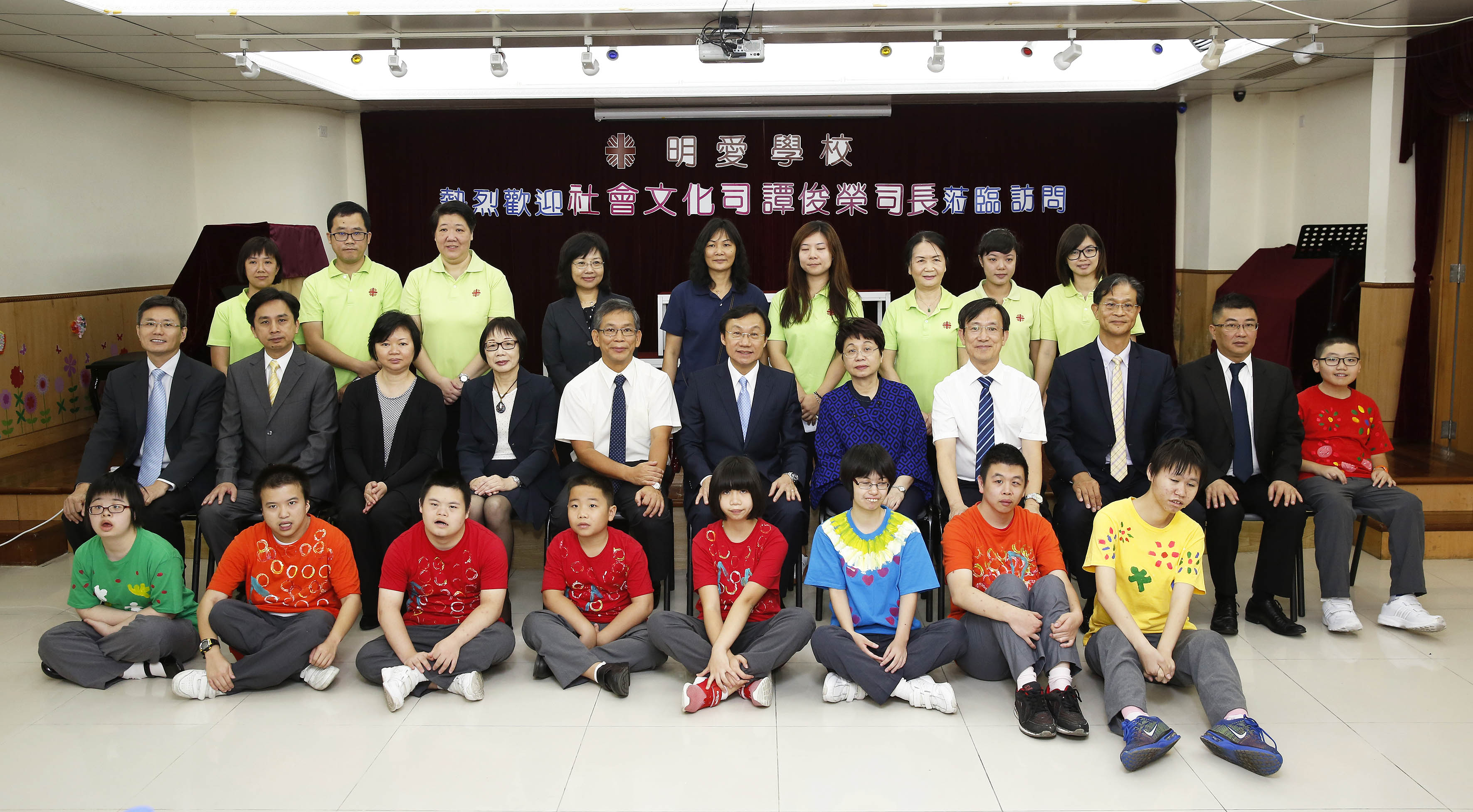 Alexis Tam assistiu aos espectáculos interpretados pelos alunos e observou, de forma minuciosa, as salas de terapia profissional e salas de aula, na companhia do chanceler da escola, Paul Pun e do seu director escolar, Cheung Shek Chiu, e aproveitou para entrar numa sala de aula para comunicar, de forma interactiva, com os docentes, o pessoal de apoio e os alunos.