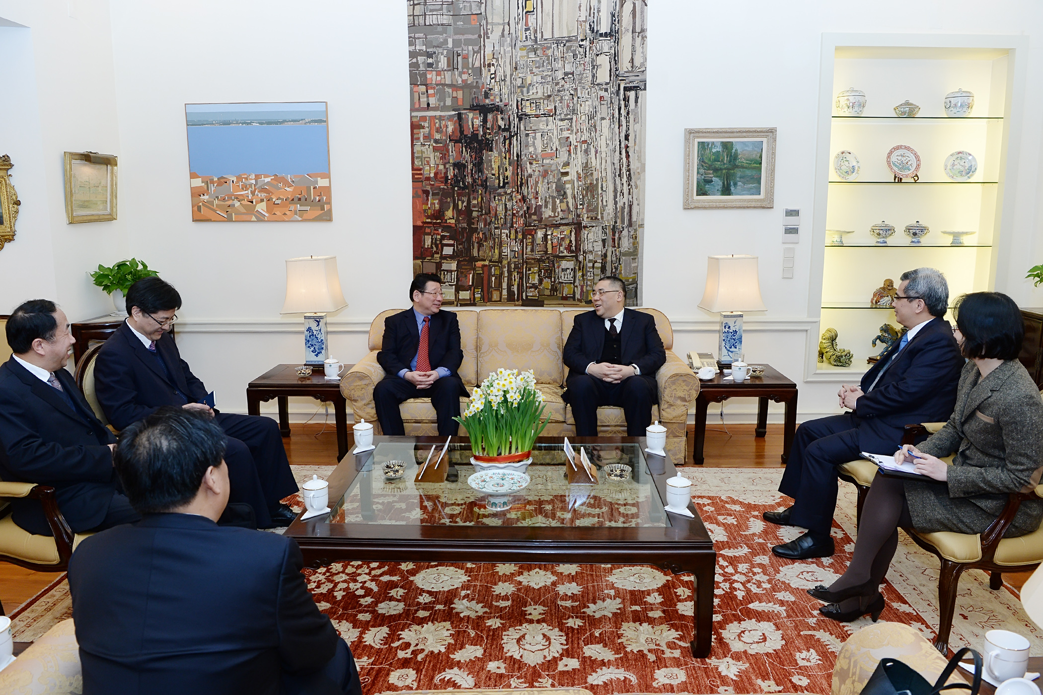 O Chefe do Executivo, Chui Sai On, teve, hoje (29 de Janeiro), um encontro, em Santa Sancha, com o vice-ministro do Ministério da Segurança Pública, Chen Zhimin, com o objectivo de trocar opiniões sobre o intercâmbio e cooperação entre a Região Administrativa Especial de Macau (RAEM) e órgão de segurança pública da China interior.
